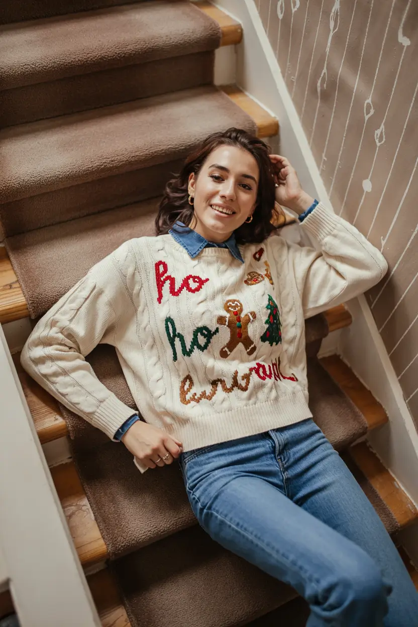 Not every holiday look has to be covered in sparkles. There’s something so wonderful about the simple things. For example, a cream cable-knit sweater covered in Christmas motifs worn above a denim shirt. Something so casual, yet nostalgic, that if worn in December radiates joy. This is exactly what captures the playful side of the Christmas season and that’s why it’s on my list of best christmas outfit ideas that you can wear to family gatherings or cozy mornings at home.