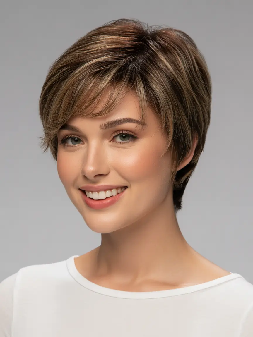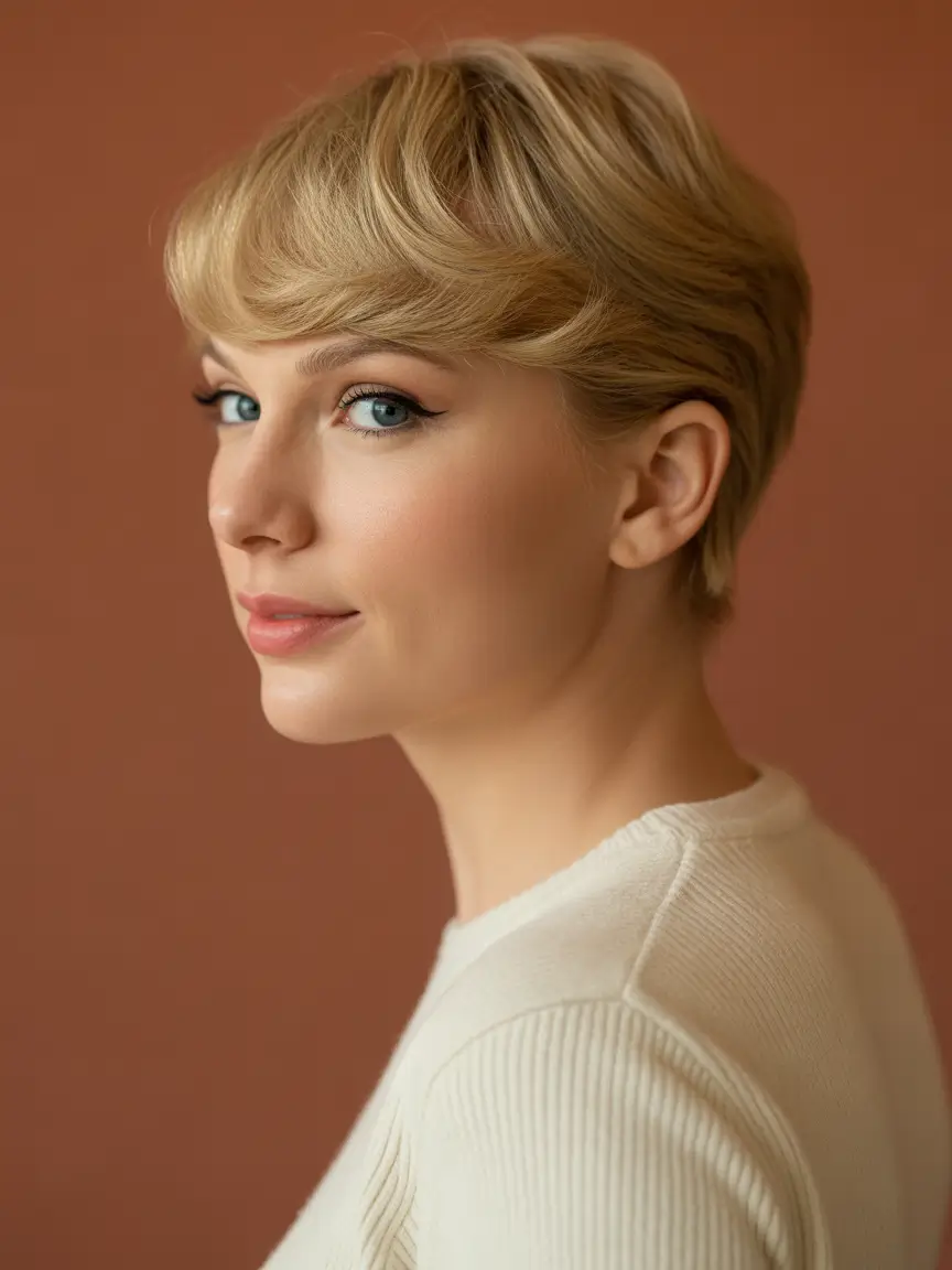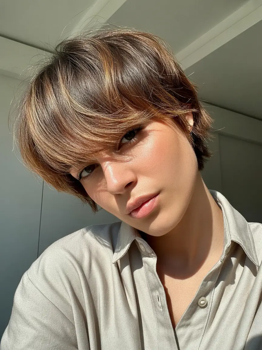 This one is like candlelight in a hairdo – warm, golden and very luxurious. The side-swept fringe slides into layered layers that perfectly blend to form a silhouette that appears not to be too hard but is made especially well balanced. In my case, it is the most classic one, a winter pixie haircut, with a slight touch of Old Hollywood glamour, and with an entirely modern twist.