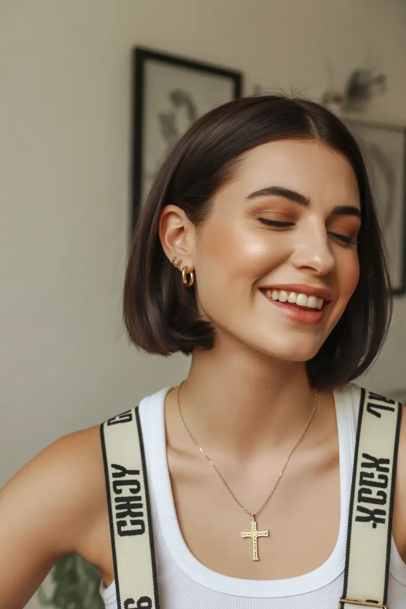 Whenever I wear such styles, I always apply a nourishing styling cream to ensure that the edges are smooth and feelable. One must-have of winter is the Oribe Crème for Style; it does not stiffen hair, but manages it and neats flyaways. Having a cut this short, every detail counts – be it hydration, shine.