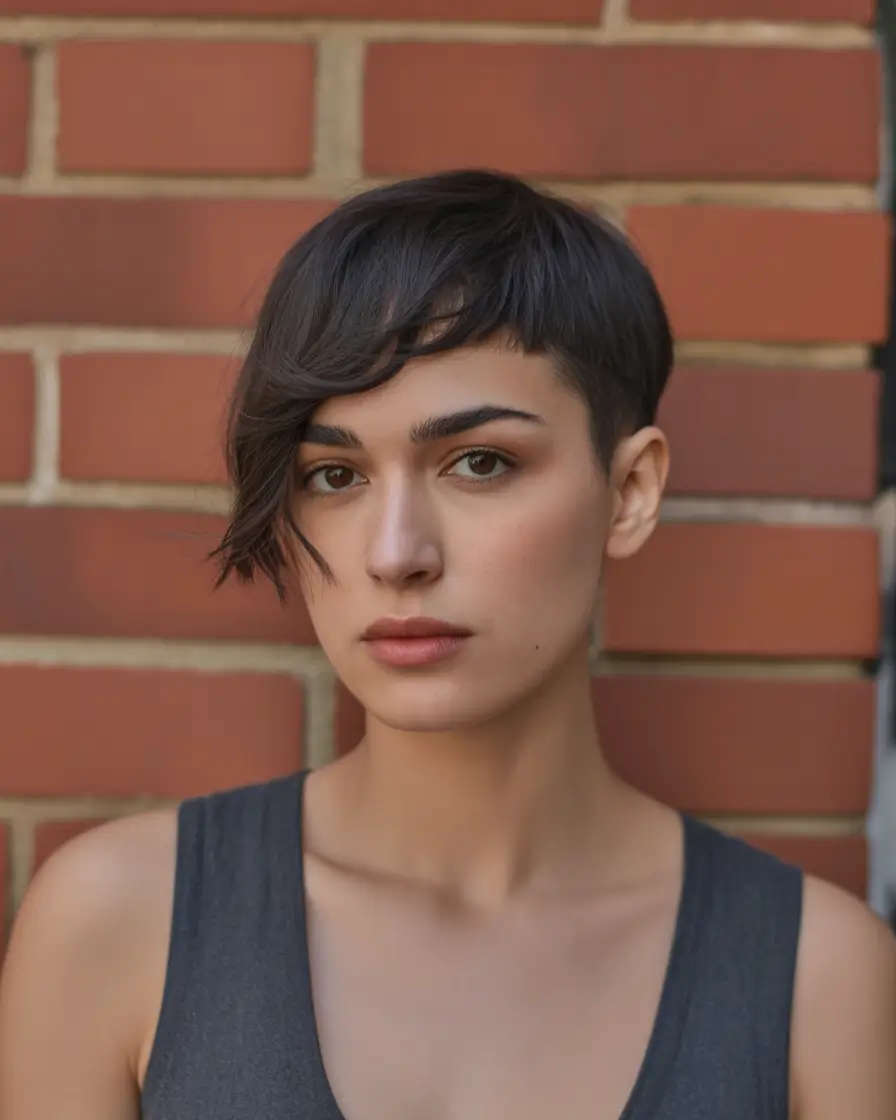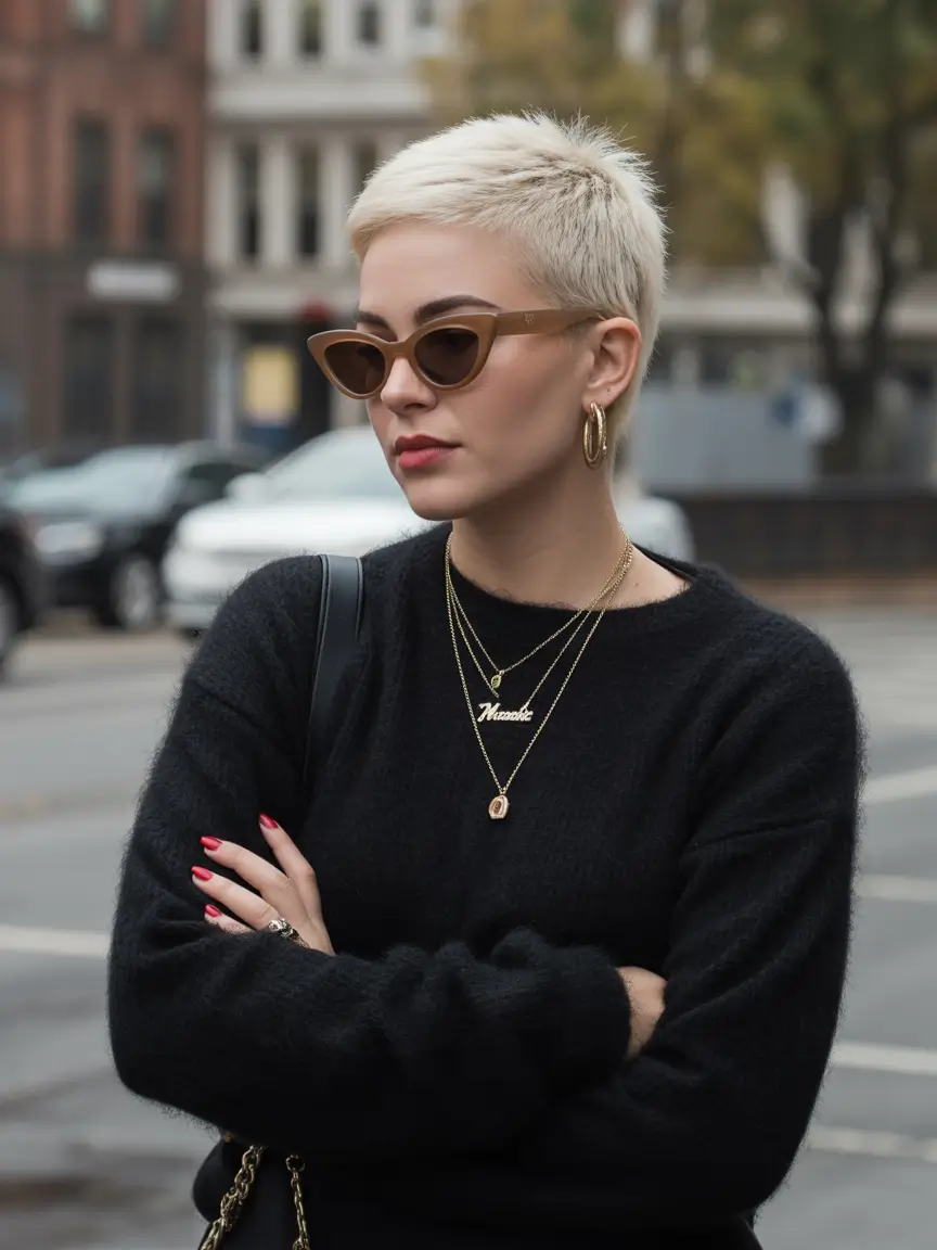 This is one style that makes one feel strolling into an old film- elegant, dramatic and at the same time, the ideal modern fashion. The deep side part and sleek volume in this pixie haircut outfit winter style are an allusion to the vintage glamour. The texture is smooth, the form is correct – it is the type of hair cut that requires red lipstick and a self-assured smile.