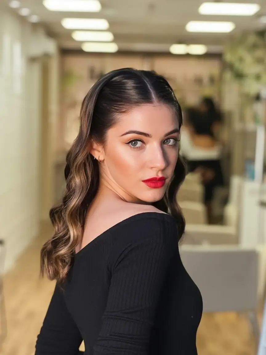 I would name this the final modern muse style hair in the year 2025. It goes smoothly through brunch to midnight cocktails, to subtle to statement. You can add gold hoops or velvet accessories to it to make it even higher–you will feel unstoppable.