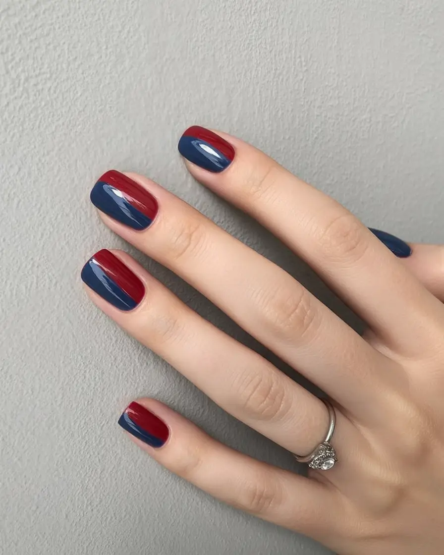 The combination of opposites is something quite gratifying at least in this case with this bold red-and-navy split pattern. It is organized and at the same time lyrical, contemporary but eternal. The reflective quality of the two shades is glossy and gives that mirror-like finish that is rich and elevated. Personally, this is among the least expected interpretations of cute short acrylic nails winter classy it has power and is nonetheless playful.
