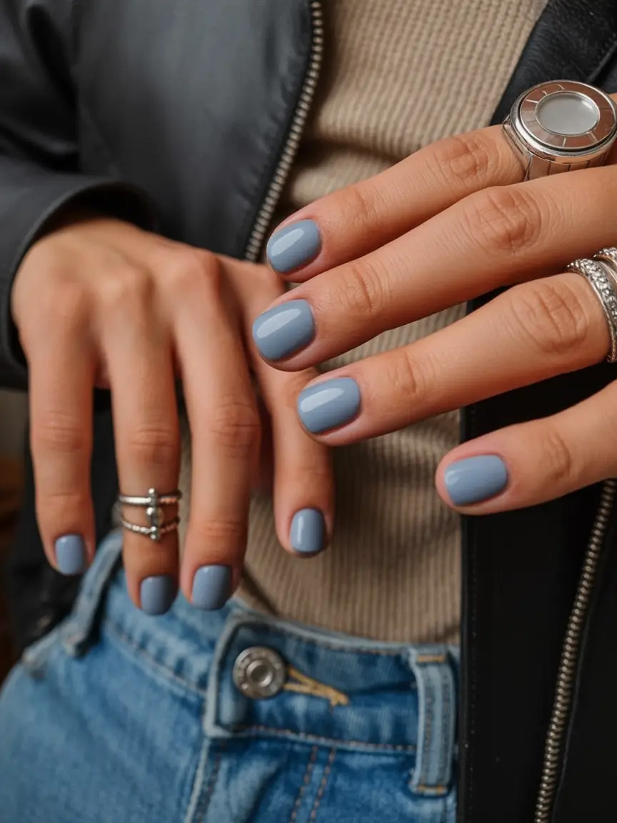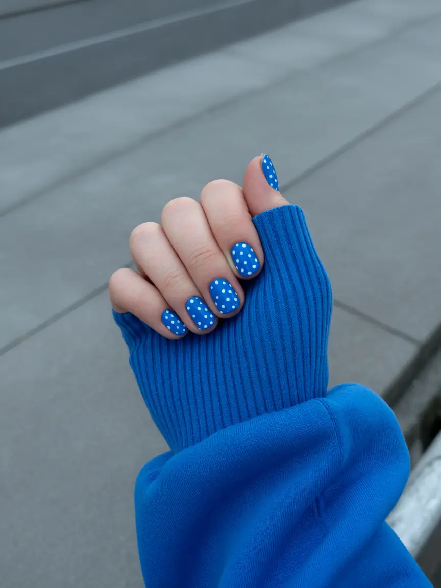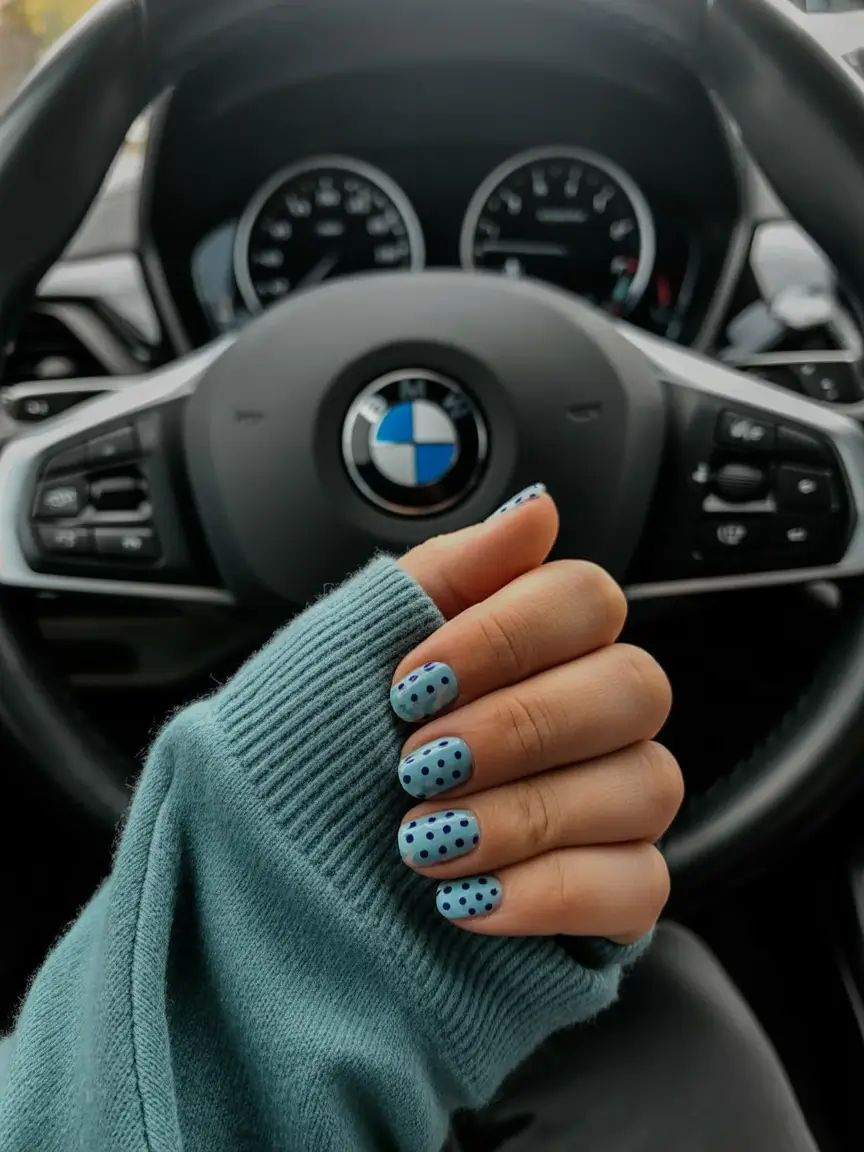 There are occasions when winter is begging to be bold in color and this blue? She’s a statement. It is playful, fearless, a little nostalgic, dotted with playful white spots, and meets pop art with the same freshness of vintage ski sweaters. This is the gist behind cute winter nails acrylic short black options; a contrast of dark colors to a light and unexpected one.
