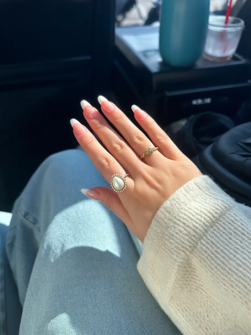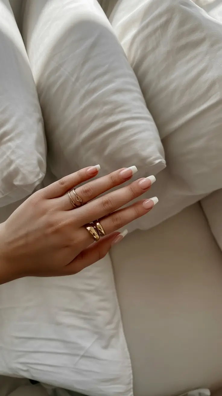 A different interpretation of the French style, a little longer, more marked and a little warmer sounding. These nails are a combination of creamy pink and sharp white ends, which is a luxury kind of finish and matches with cozy knits or tailored coats. It is one of those adorable short acrylic nails winter classy nails which leave the feeling of elegance rather than scream it.