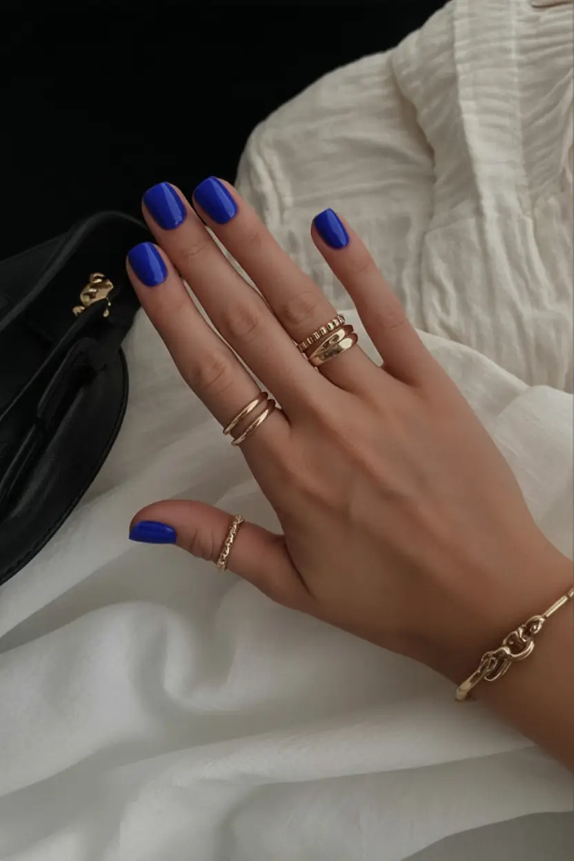 In order to get that electric finish, I apply OPI My Pal Joey or Essie Butler Please. Both colors are dark and yet can be worn, and particularly on shorter squaired nails. Spray a glassy lid on top and allow it to shine. One nail artist who was known as a celebrity, Brittney Boyce, once quoted, Blue nails are the new red, it is confidence in color form. And indeed such a manicure is of this nature.
