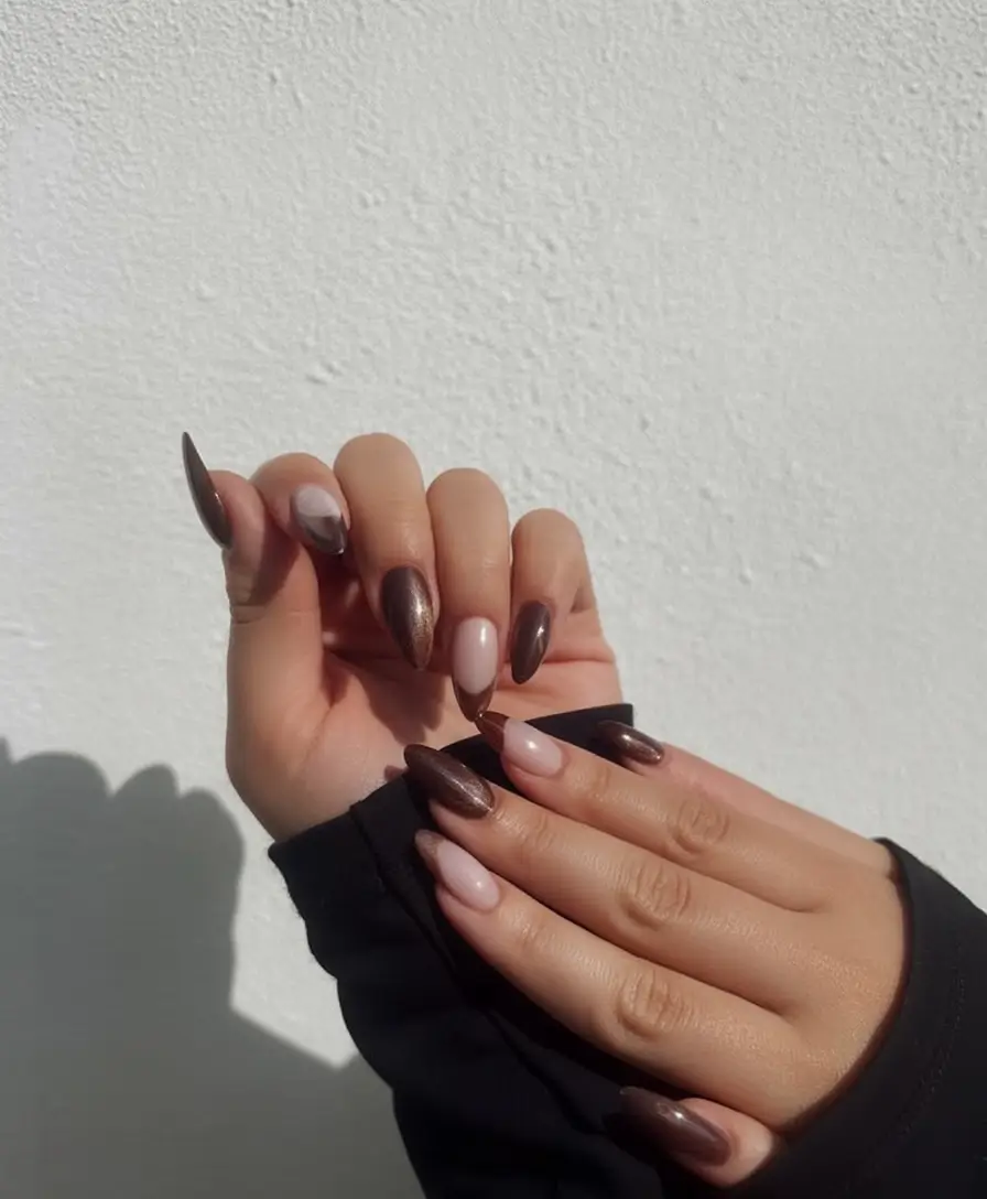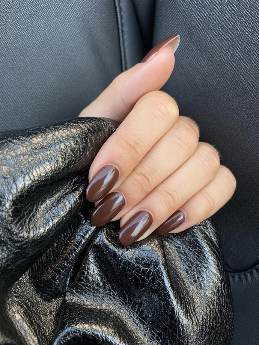 The trendy nail color that will rob winter 2025-2026 is chocolate nails. Glossy brown deep mocha with a rich touch, makes you feel like having your favorite cup of cocoa. It is subtle, but fashionable, a new crush among adorable short nails acrylic concepts winter that are not childlike.