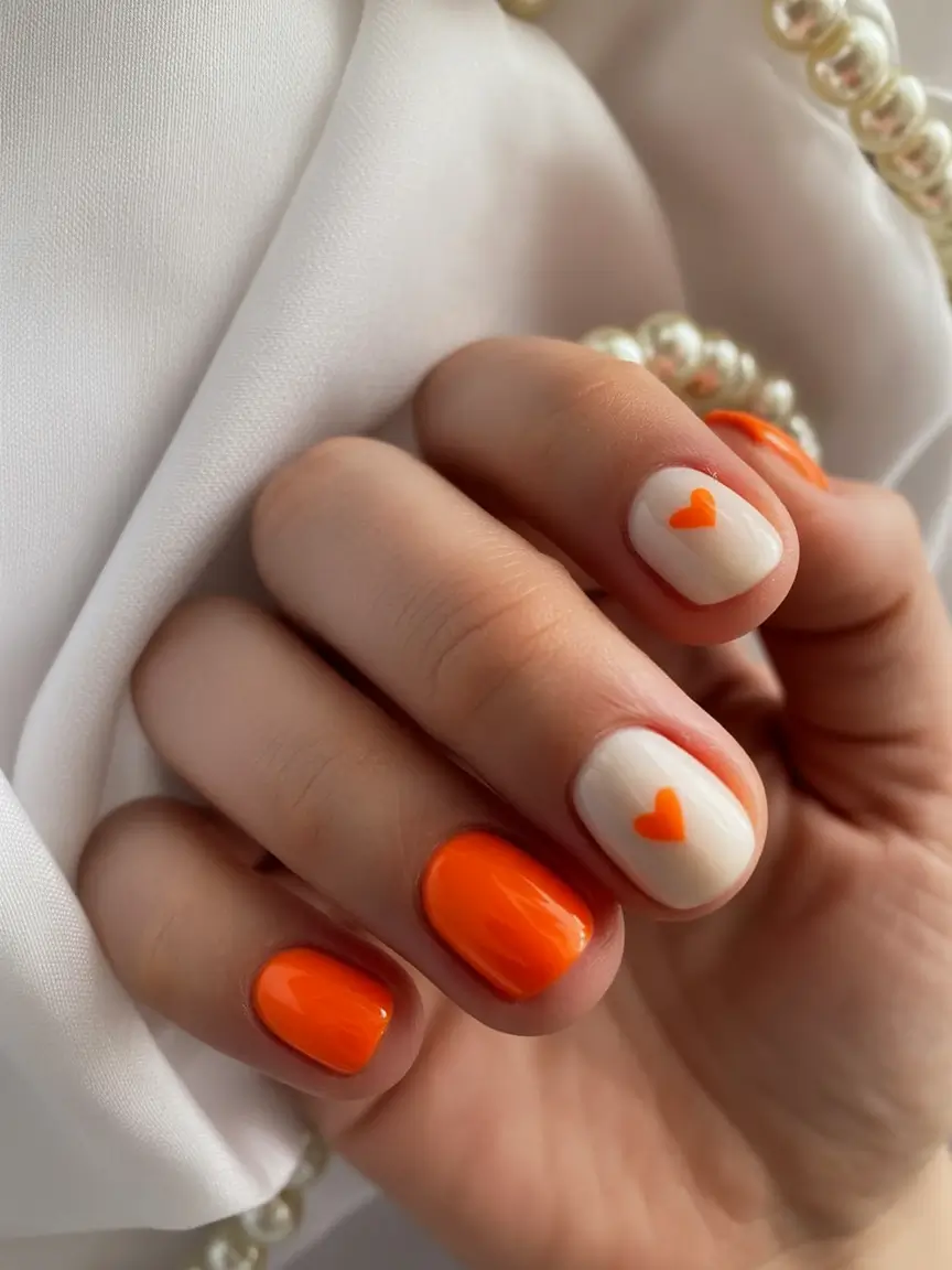 To duplicate this, I would apply OPI, and Essie, both of which are contrasting, that is, Hot and Spicy and Marshmallow. The tiny heart may be created in dotting tool or thin brush – it does not have to be perfect to be cute. That careful balance between entering bold and tender is achieved in this design as in sunshine penetrating through morning frost.