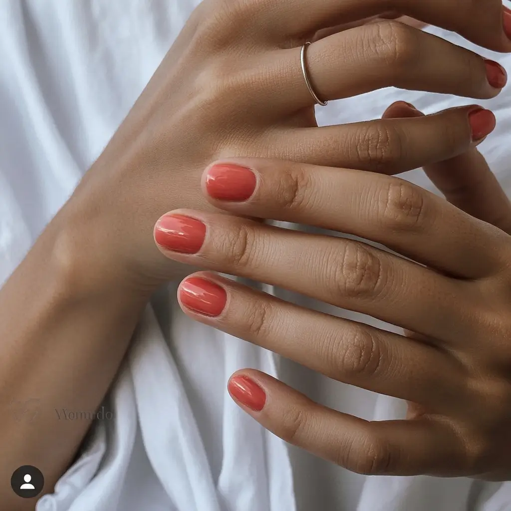 To make it, I am fond of OPI product of Cajun Shrimp or Essie product of Tart Deco. Both are providing that creamy, citrus kissed coral which suits all the skin colors. The mathematics of this shade is that it leaves your hands bright immediately, no glitter, no embellishments, pure and chic color only.