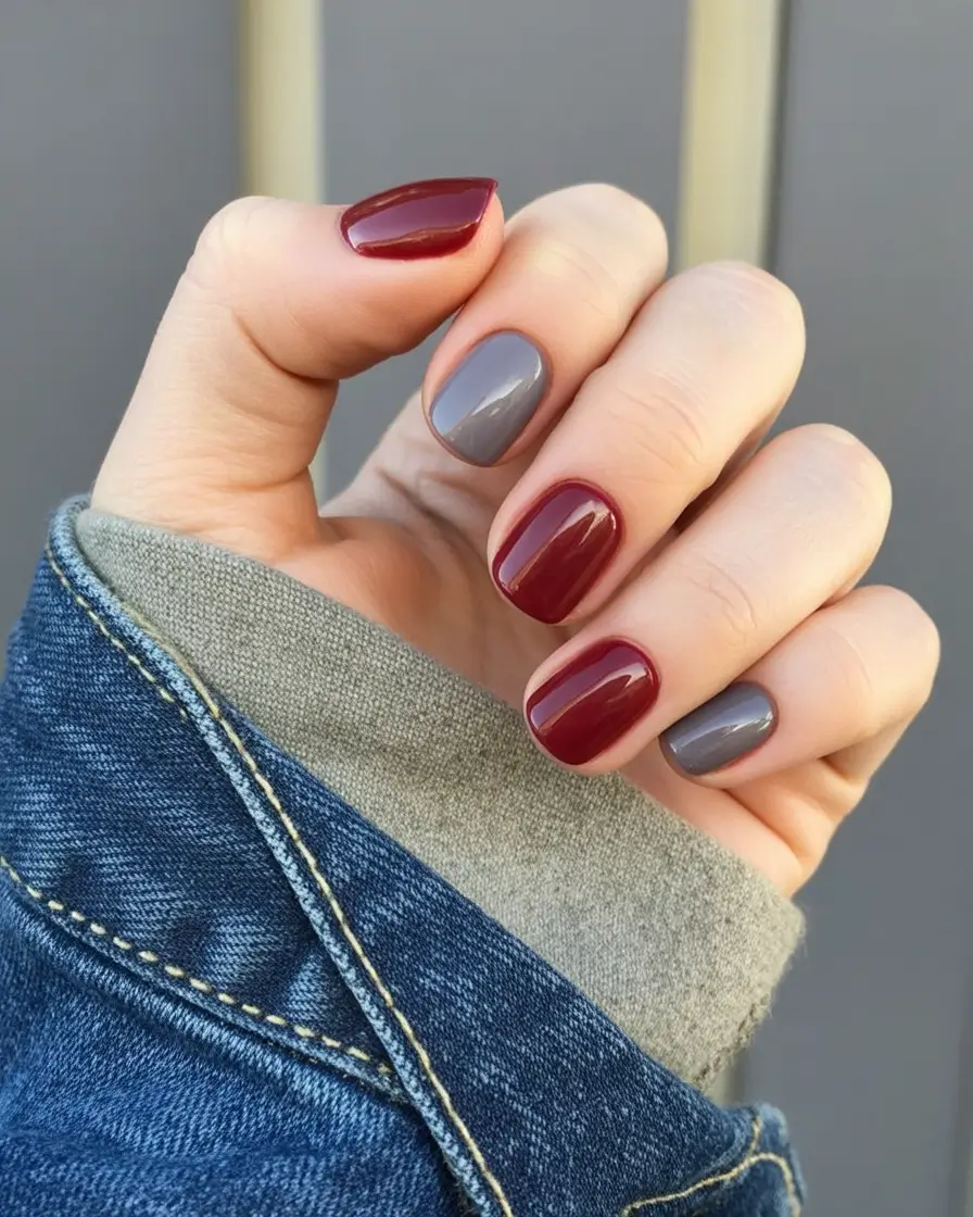 The color combinations of burgundy and gray are few that can be used to depict winter. The combination makes them contemporary, warm and, at the same time, silent luxury. It can be used alone or together with your favourite polish to make your winter manicure in gel form have an immediate element of elegance to it, the candlelight dinners, cashmere scarves, and that first glass of mulled wine.