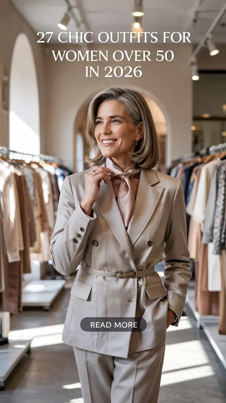 Monochrome doesn’t mean monotone. This creamy three-piece outfit—blazer, trousers, and V-neck tee—proves that soft color can carry major impact when styled with confidence. From the matte sunglasses to the raffia-and-stripe tote, every element here plays with texture and tone to create one of the most polished cute fall outfits for women classy we’ve seen all season.