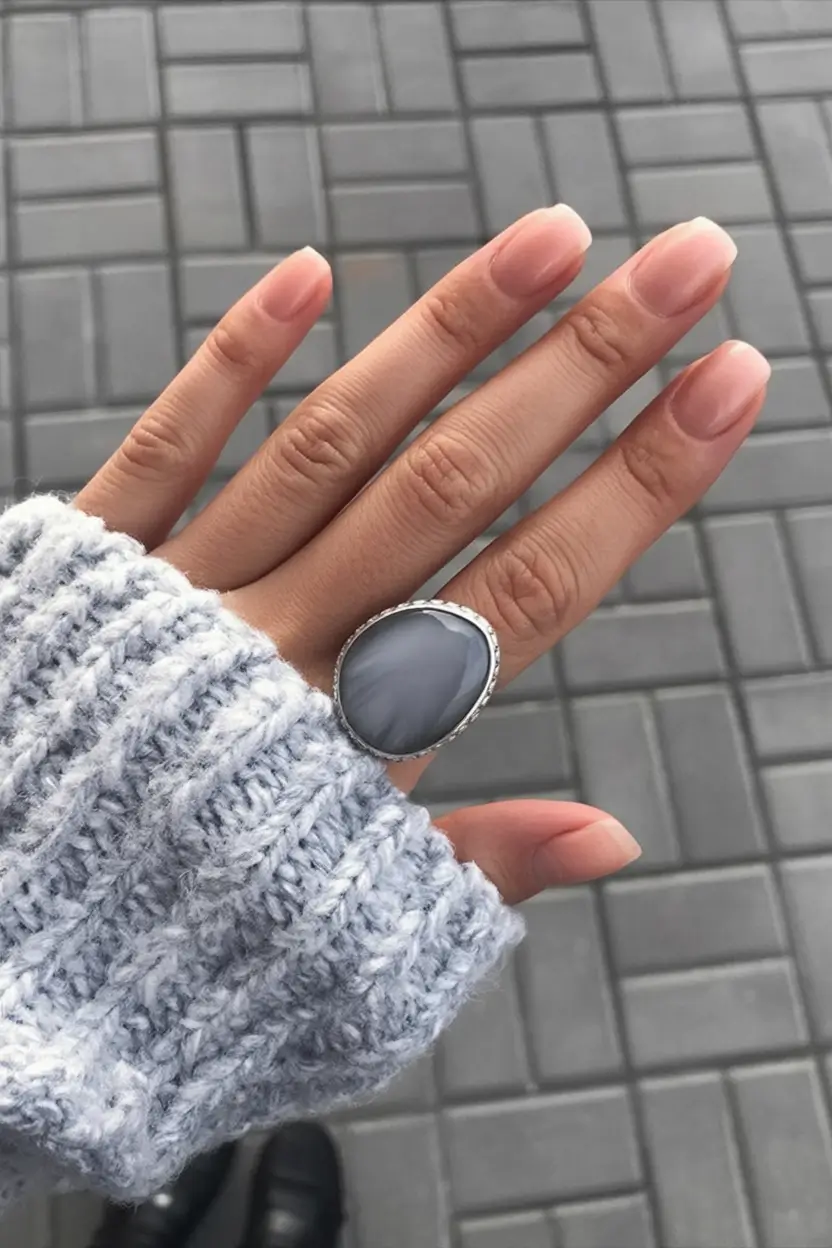 An intangible perfection of a translucent, soft naked manicure in winter. It is subtle yet refined, such as cashmere to your hands. I am in love with the way it matches anything – a gray coat, a bulky knit sweater. It is a type of winter manicure trend that is more about improving, rather than disguising. It is not yelling it through a whisper.