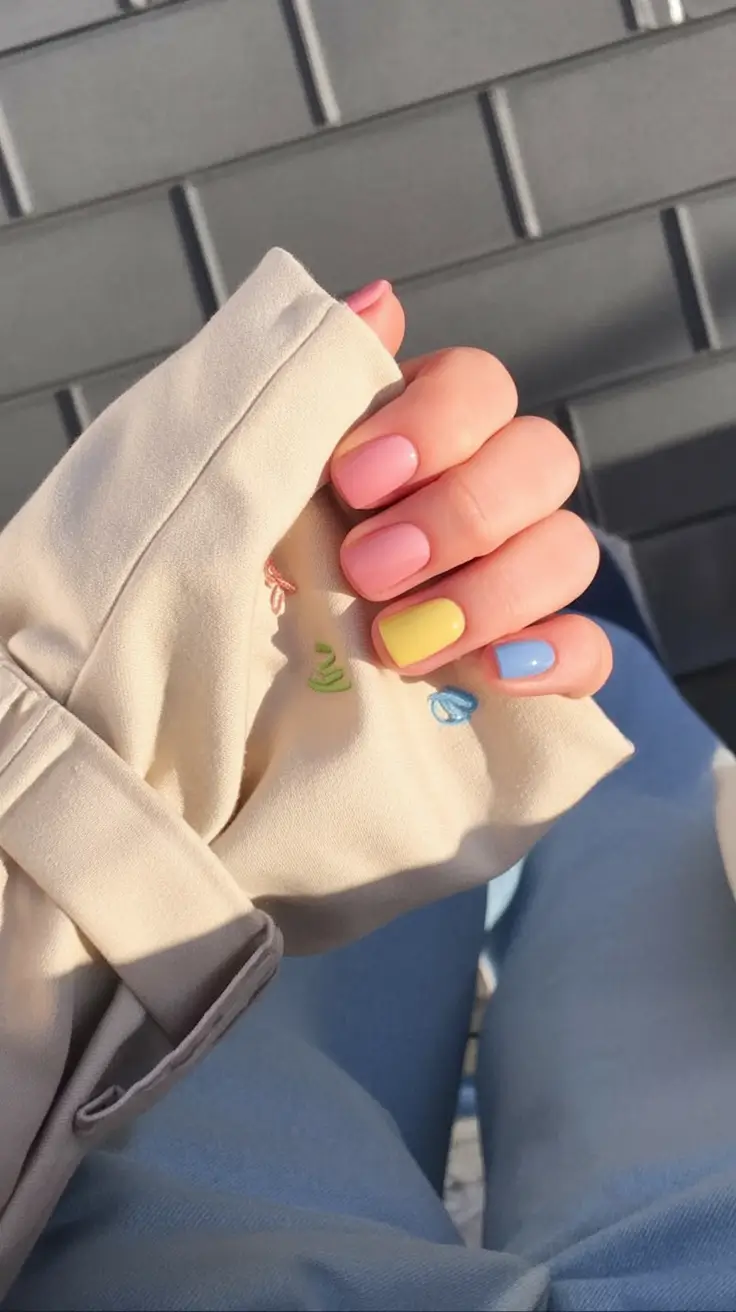 Who told you winter nails were not fun? This light pink, yellow and baby blue seems to be a ray of sunshine on snowy winter morning. It is the final pick-me-up manicure of gray days and one of my favorite manicure trends winter 2025-2026 because it introduces some color therapy in the coldest months of the year.