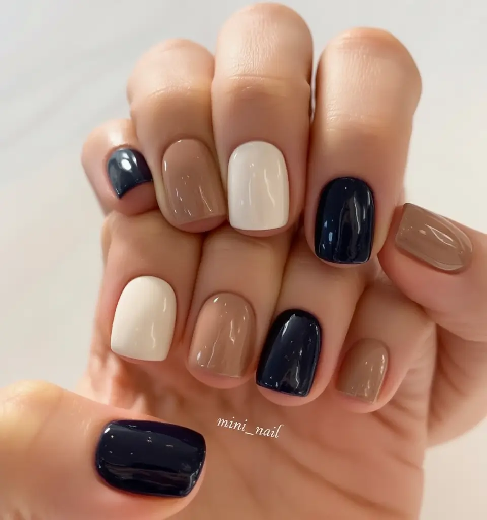 Navy, beige and crisp white- this is the combination of contrast at its best. It is smooth, bold and extremely wearable. The combination of cool and warm coloration makes it evident without being too fashionable, that is why it becomes one of my best tips to do this season as far as manicure trends in winter are concerned.
