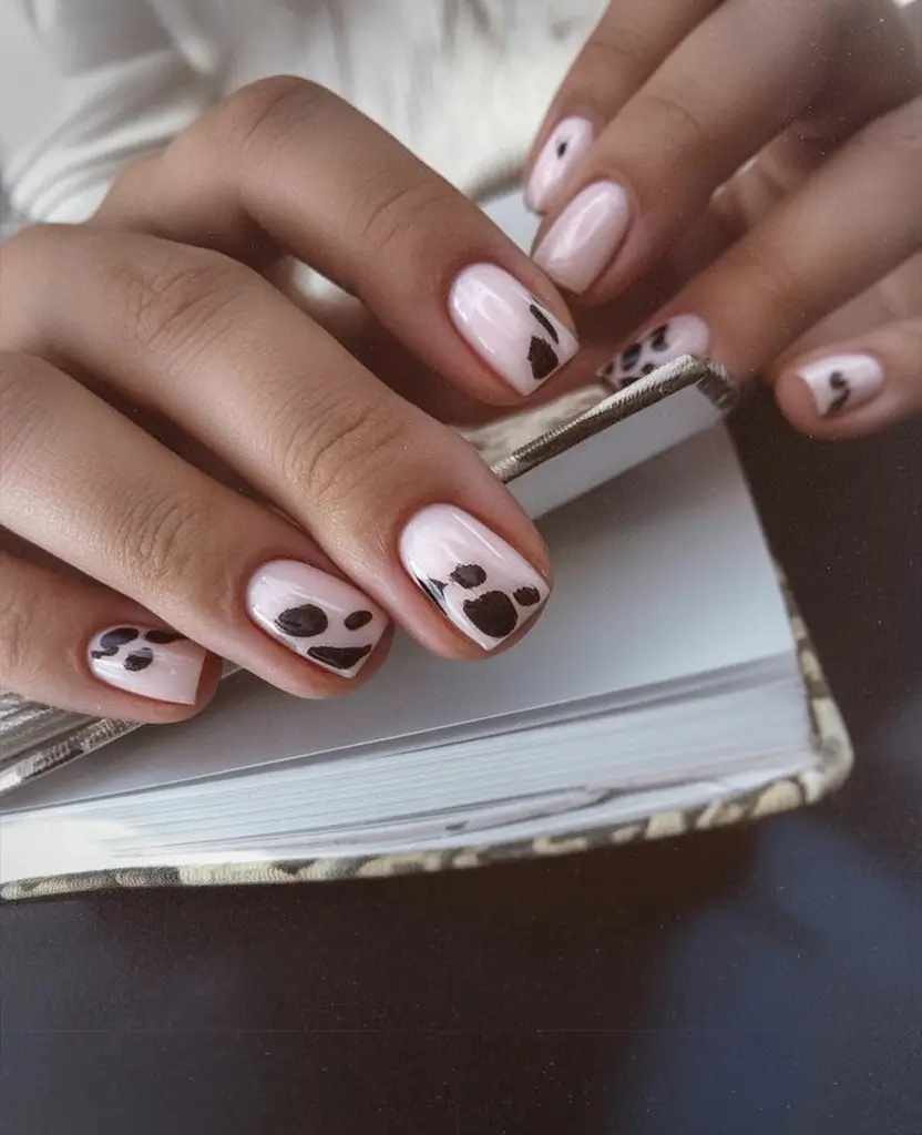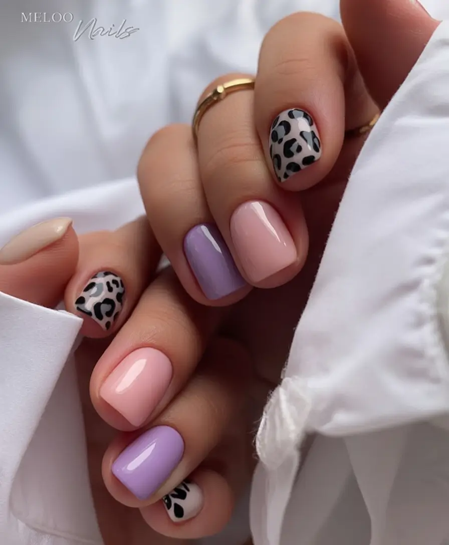 Cute but elegant – this is the atmosphere of this pastel and animal print combination. Pink lavender, pink leopard and pink blush accents are united to make something soft and bold. It is the best match to manicure trends winter 2025-2026 since it is a unifying element between two significant aesthetics: home comfort and fashion bravura.