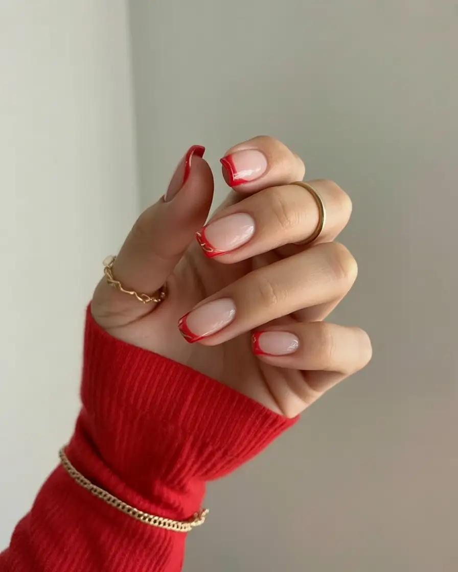 Something just too contemporary about this red-framed French manicure. The classic French tip has been on a vacation to Paris in December and had returned more bold. The fine pink foundation and red acute lines are celebratory but elegant – it is one of the trendy manicure trends winter will be searching at 2025-2026.