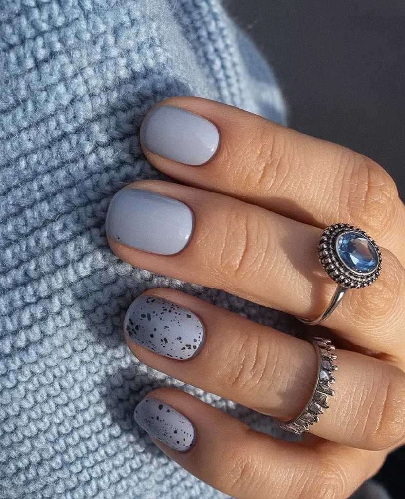 Had the metallics an easier side, it would resemble this — dull silver-graysome with a luxurious mat texture. It is subtle and full-bodied and among the most refined manicure trends of winter 20252026 has provided. The finish suggests to me frosted glass – cool, minimal, and elegant. It is ideal to those who desire something that is seasonal and lightweight.