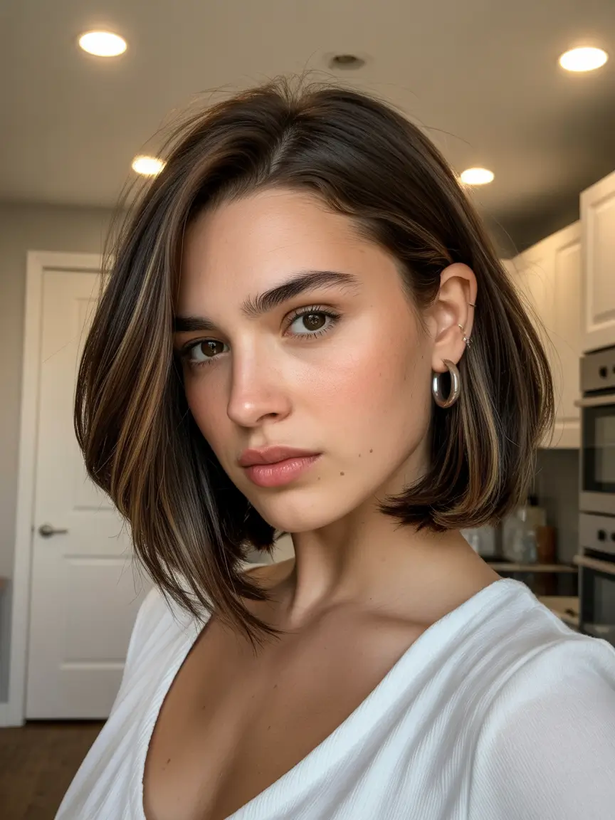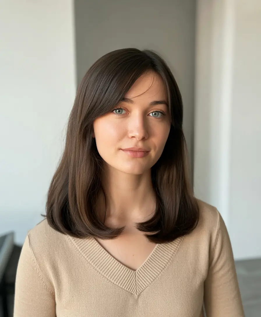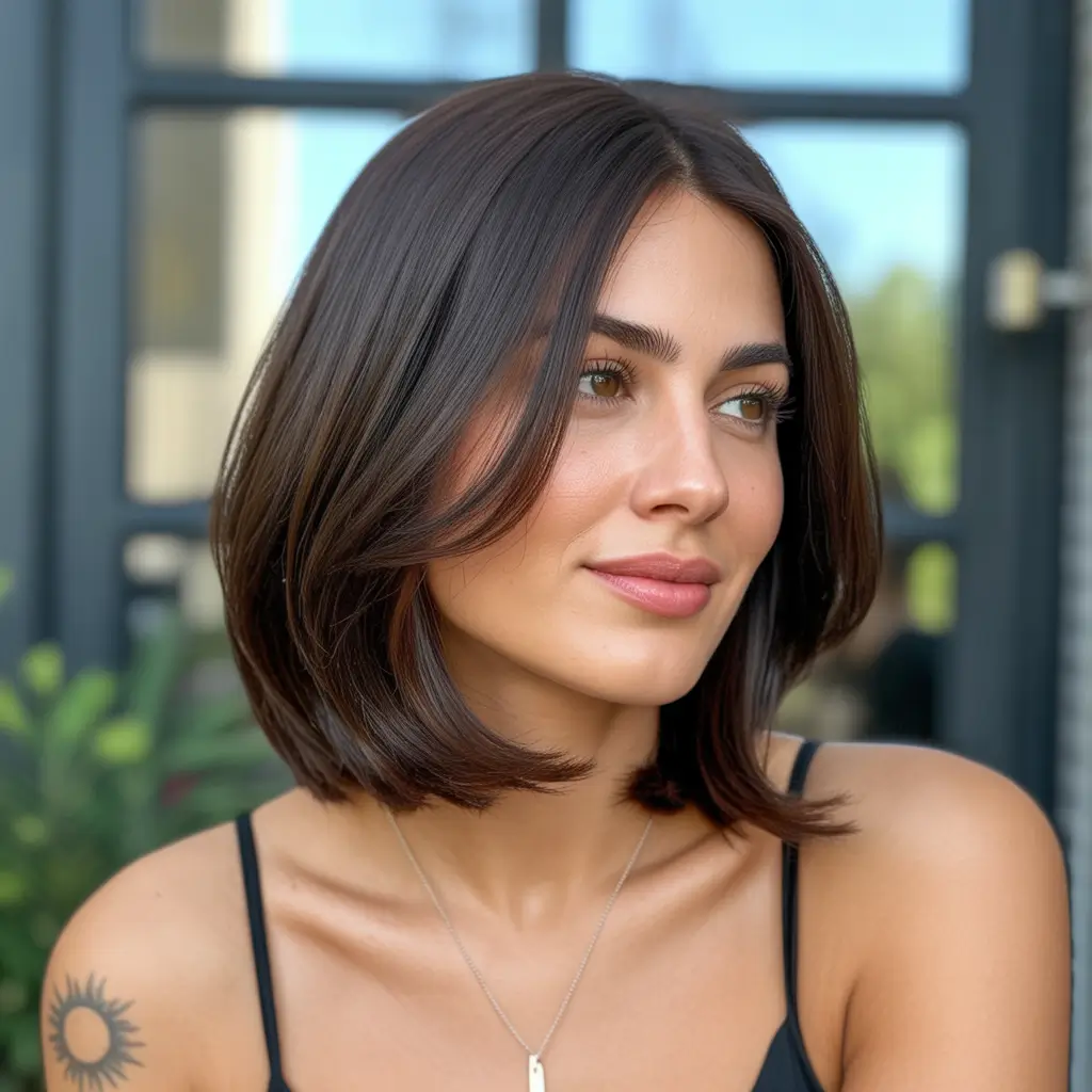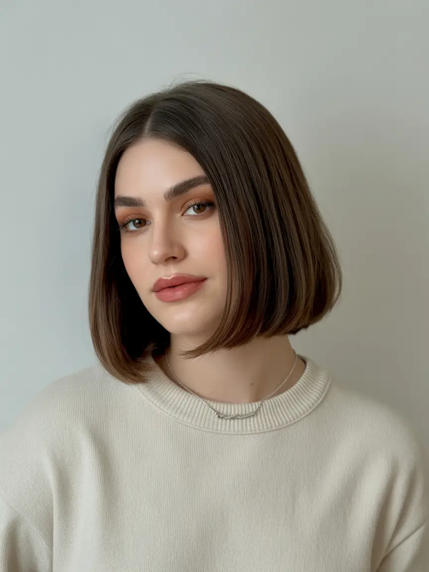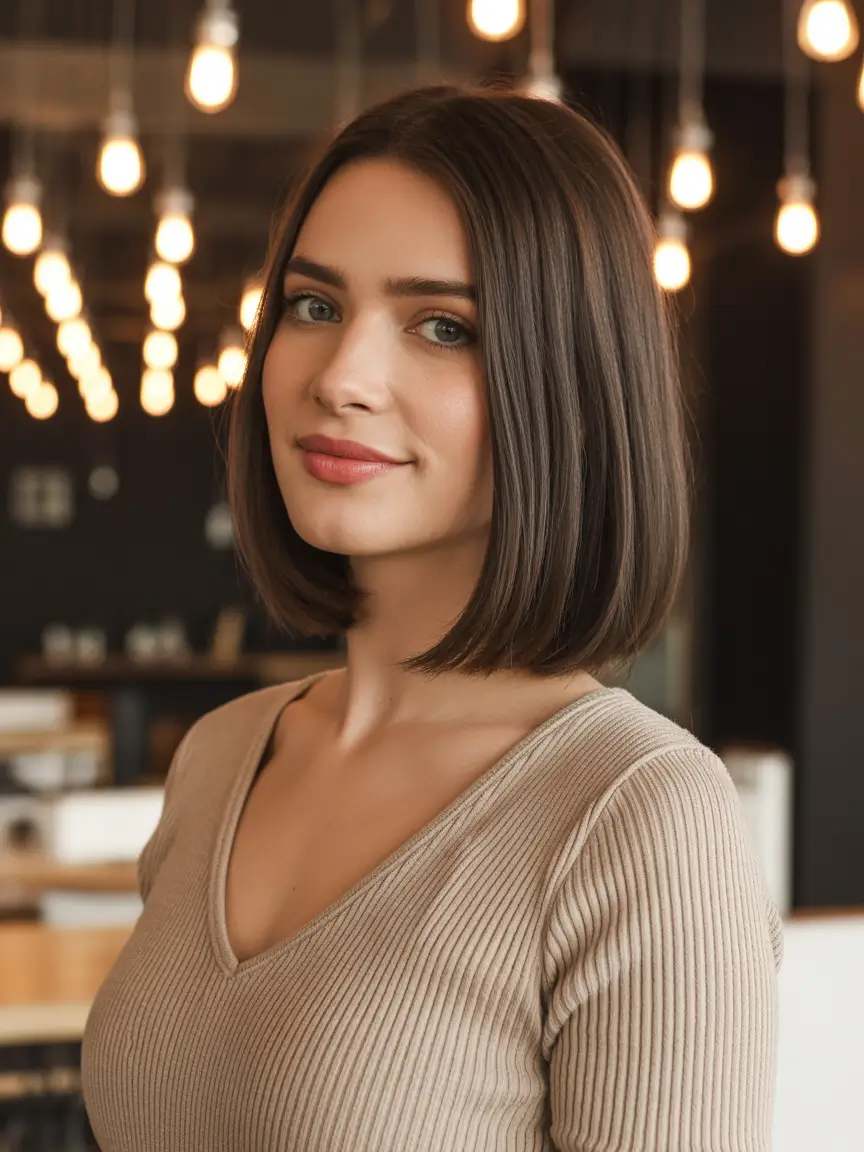 The initial impression about this cut is its unashamed simplicity, a simple, slightly beveled bob that is extremely deep in brunette, which is both comfortable and elegant. It is the type of brown bob haircut winter appearance that indicates that I am concerned with details, yet not excessively. This is structured by the blunt ends and the movement is created by the soft inner layers in such a way that it catches the light ideally each time you swing your head. It is confident silence here, the sort of silence that does not require the presence of curls or waves to be effective.