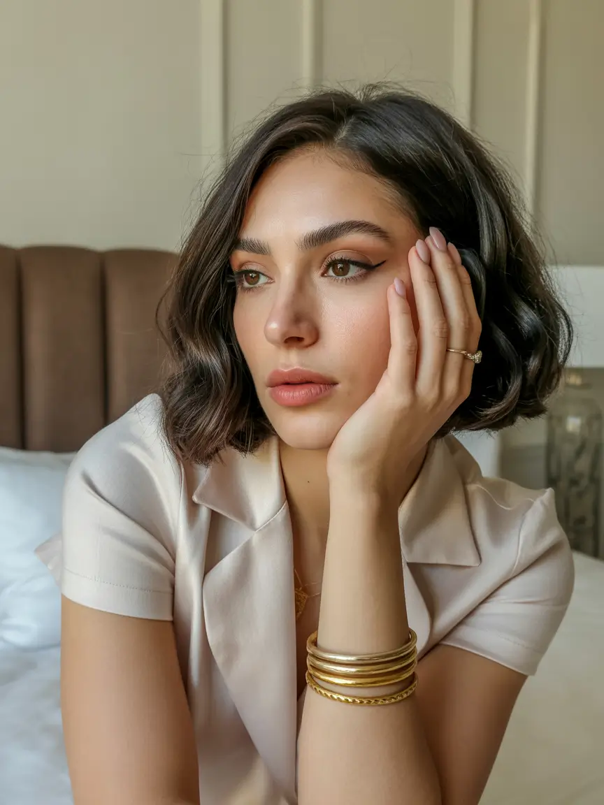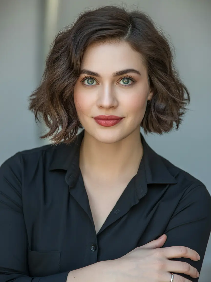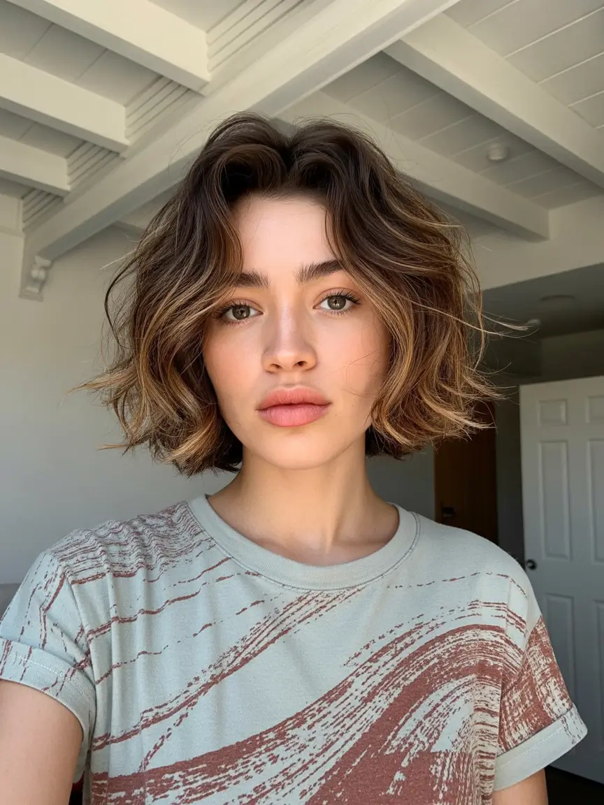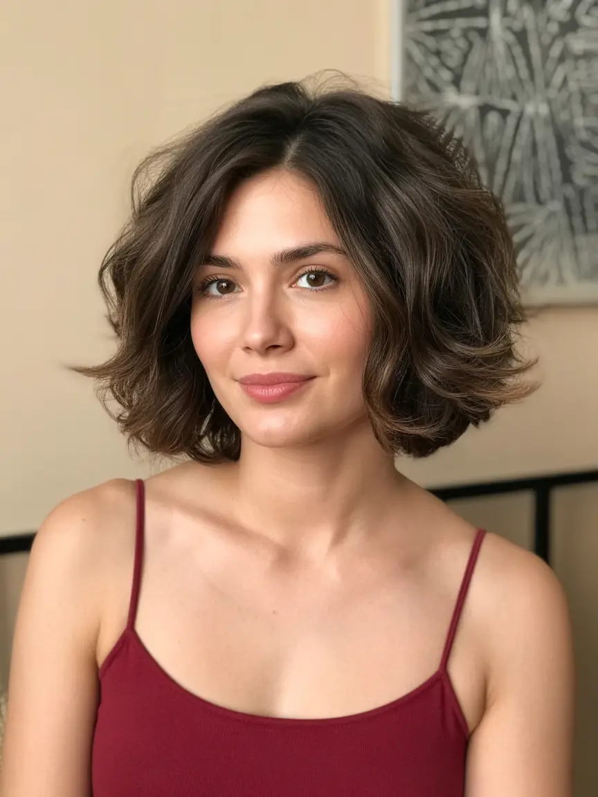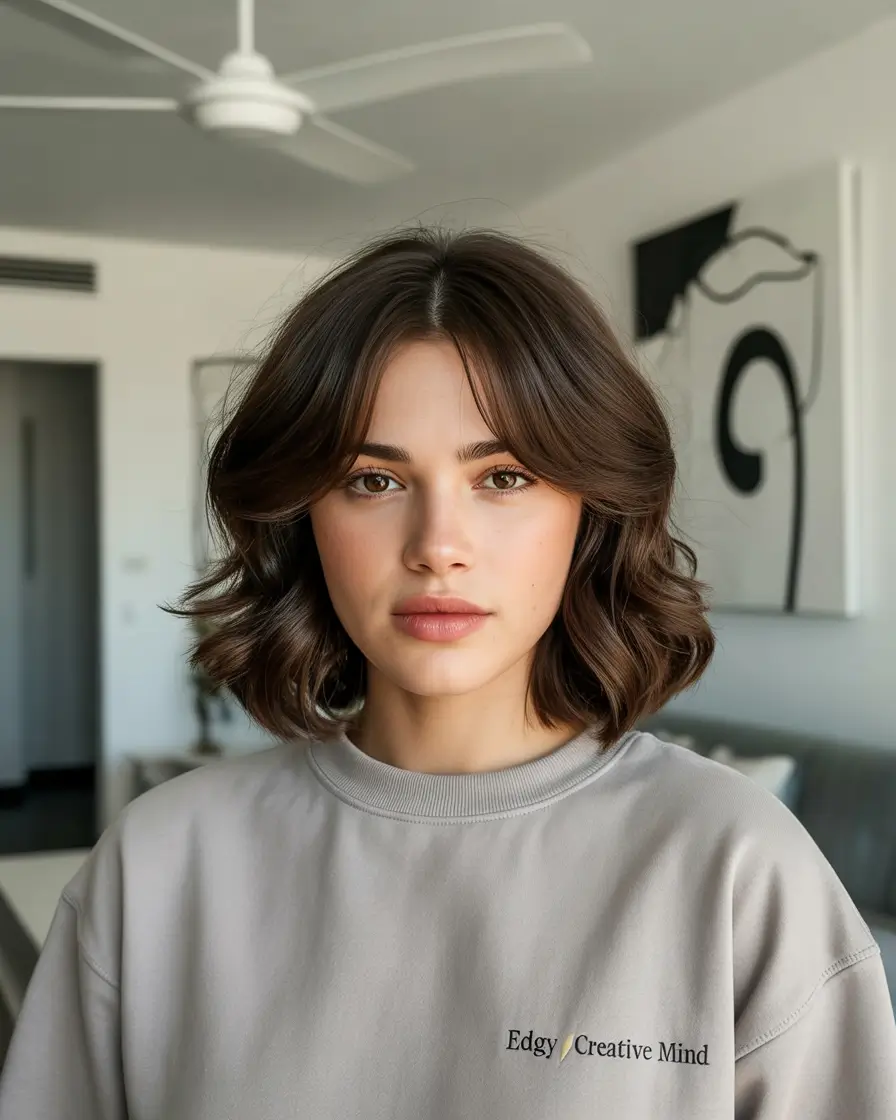 It is a film kind of softness in this wavy bob, the kind of a texture that catches light and emotion simultaneously. The waves are loose and form the face in the most desirable fashion which gives it the get-up-chic feel of just waking up and looking stylish. It is a winter bob haircut that is timeless but up-to-date, such as retro Hollywood and innovation but minimalism. The warm color of the dark brunette skin gives it a warm effect even on the coldest mornings.