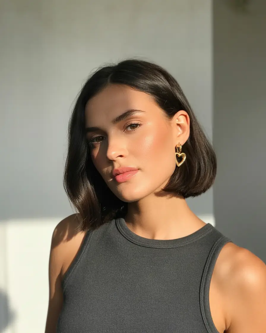 This is the prettiest in-between in case you are tempted to shorten your hair this season, but you are not ready to cut it into a pixie. It shapes the face, smooths the jaw, and plays with virtually any winter bob haircut aespa trend inspired outfit, most notably big earrings and a sexy smile.