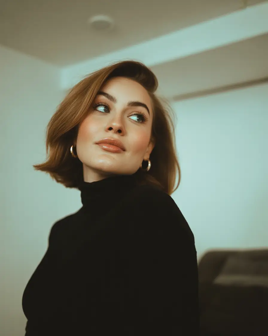 This one is the warm aspect of glamour, imagine the hues of coffee foam and golden light with its play through the cafeteria windows. The caramel strands that are casually intertwined through the foundation are life and light giving, particularly favorable during colder winter seasons. It is one of those winter bob hair cuts that do not only frame your face but it elevates your whole face. The length rubs against the collarbone, which again gives it that dimension that is universally flattering. And the soft front layers? They resemble a whisper – ideal to everyone who truly wants to have a natural, stylish feeling that especially lives and is feminine.
