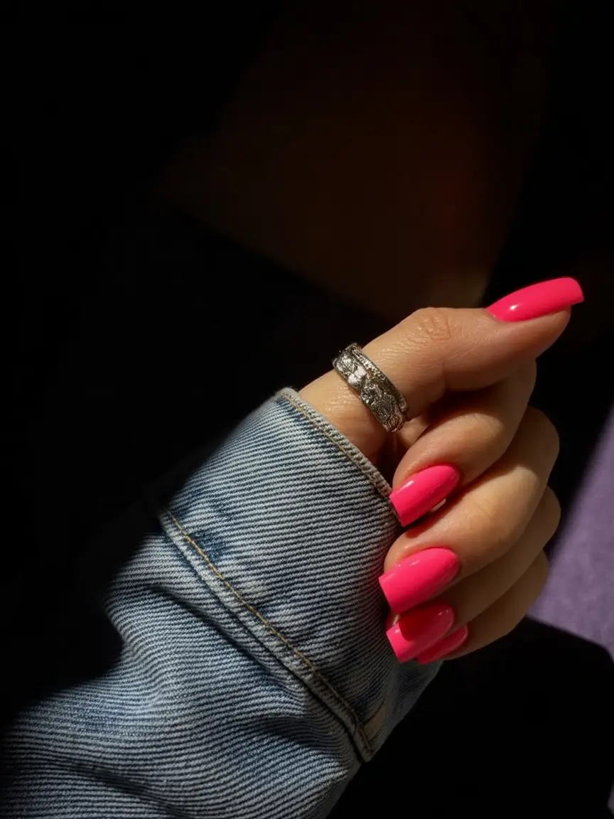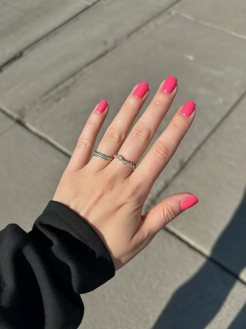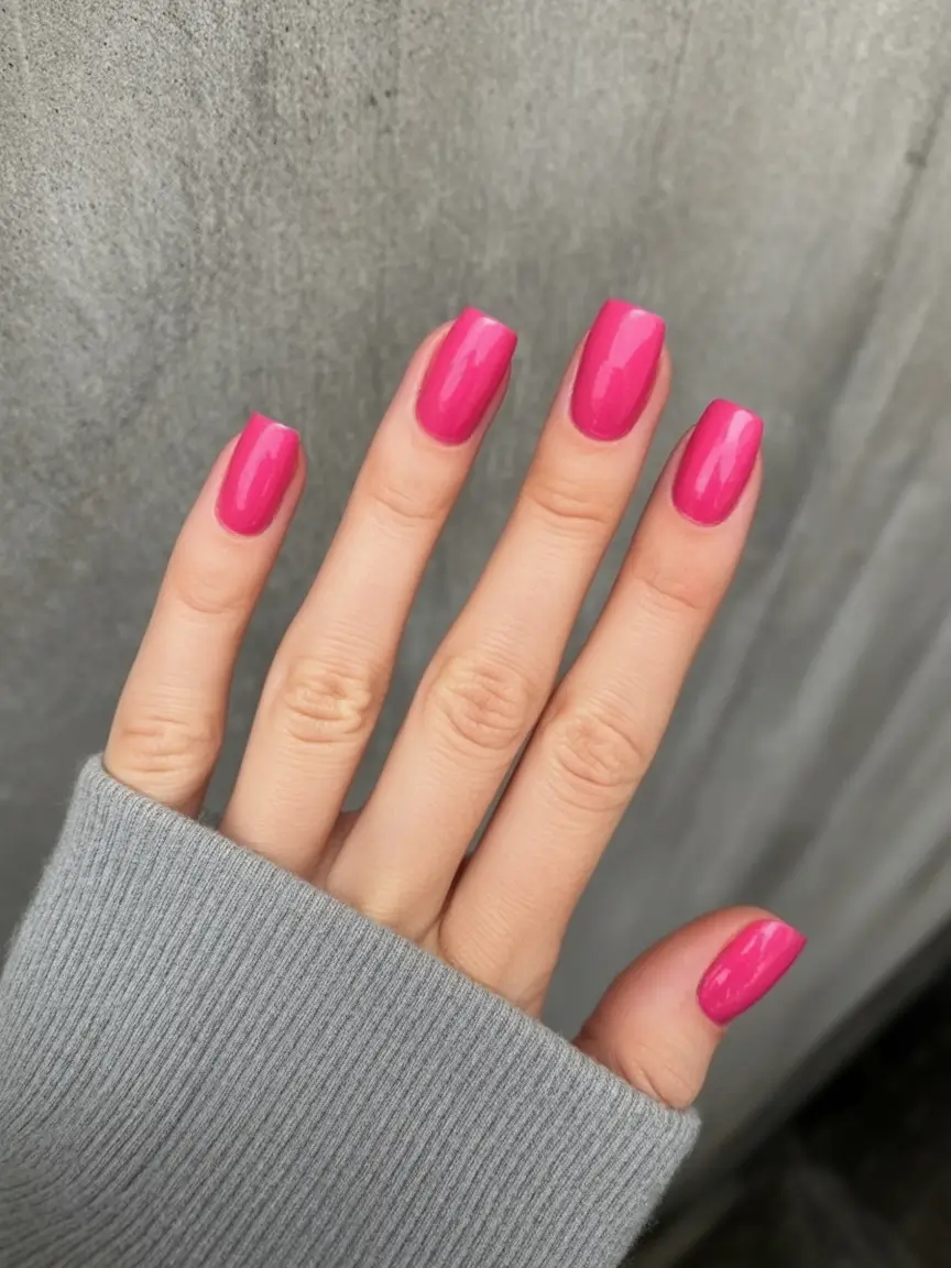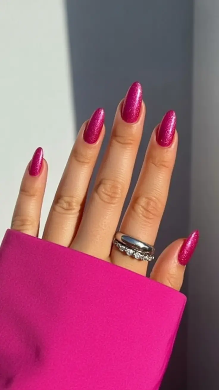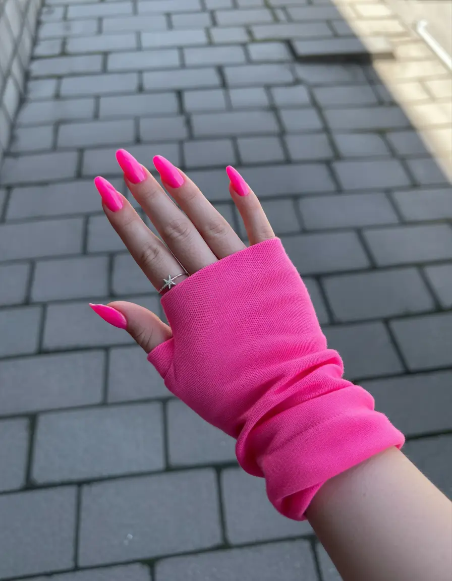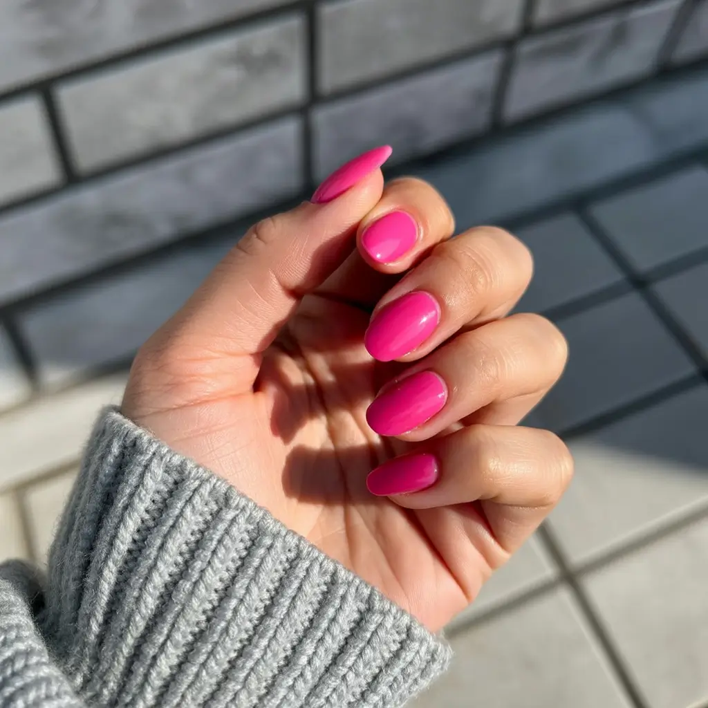 Had I to give a name to the manicure that winter 2026 will be, it would be this one, bright, aggressive, and shamelessly self-assured. The pink winter nails are long channel nails that emanate electric, bordering on neon energy that cannot be mixed up. The form of almond makes it graceful, whereas the color, which we can call it hot raspberry, gives it some rebelliousness. It is that color that makes you smile whenever you see it in the mirror.