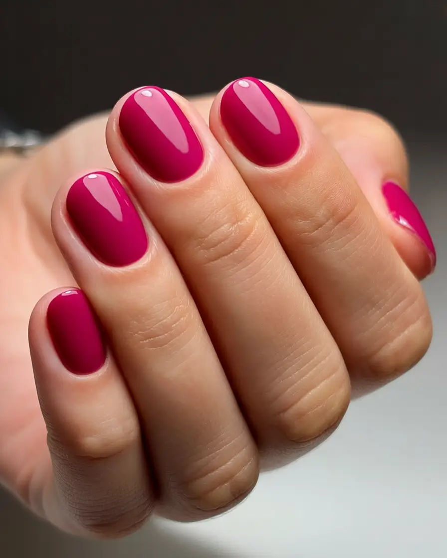 This dark berry-pink nail polish is like putting on velvet gloves on your hands. It is cozy, sexy, and well understated and is suitable to those lovers of the pink winter nails short who like their elegance rich in depth. The roundness contributes smoothness, and the vivid hue provides the appearance with a silent power, such as the dark pink sky on the verge of snow.