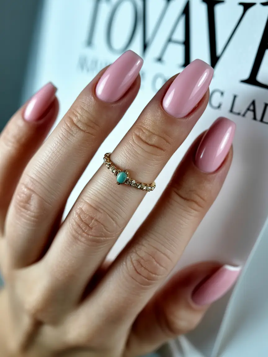To accomplish this, I would choose Essie In the Mood Ring or Zoya Payton that provides that multidimensional twinkle that is so full of money under the sun or soft lamplight. Thoroughly apply two layers to achieve an even saturation then apply a high-gloss sealing top coat. In case you are doing gel, Sparkle Pink by Madam Glam provides the same effect of heavenliness.