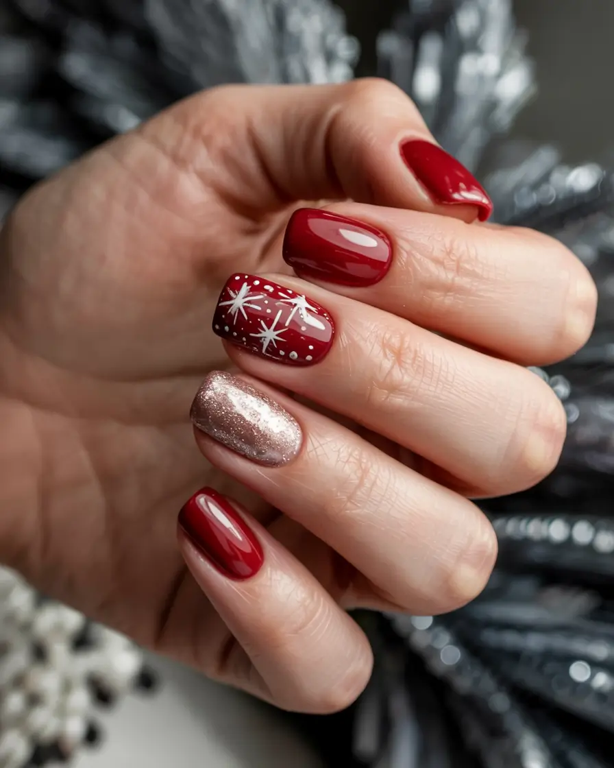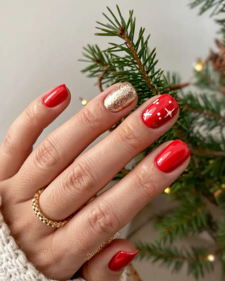 I could not agree more when one of the celeb manicurists, Julie Kandalec, had once remarked that nails are the jewelry of the season. Such a design demonstrates that — each nail is a small decoration, glittering under the light of trees. I had something of the same appearance on Christmas Eve last year and I tell you I swore every time I moved my hand the shimmer. It’s festive art, but wearable. The ideal ending to the red christmas nails thoughts of 2025.
