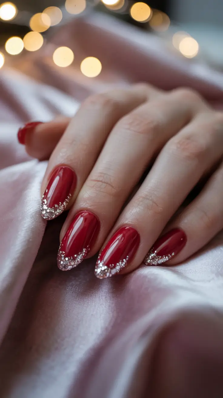 This appearance is a fantasy on red christmas nails almond admirer or anyone who desires to combine the sophistication and glitter. It goes perfectly with dresses of velvet, rings of statement and candlelit dinners.