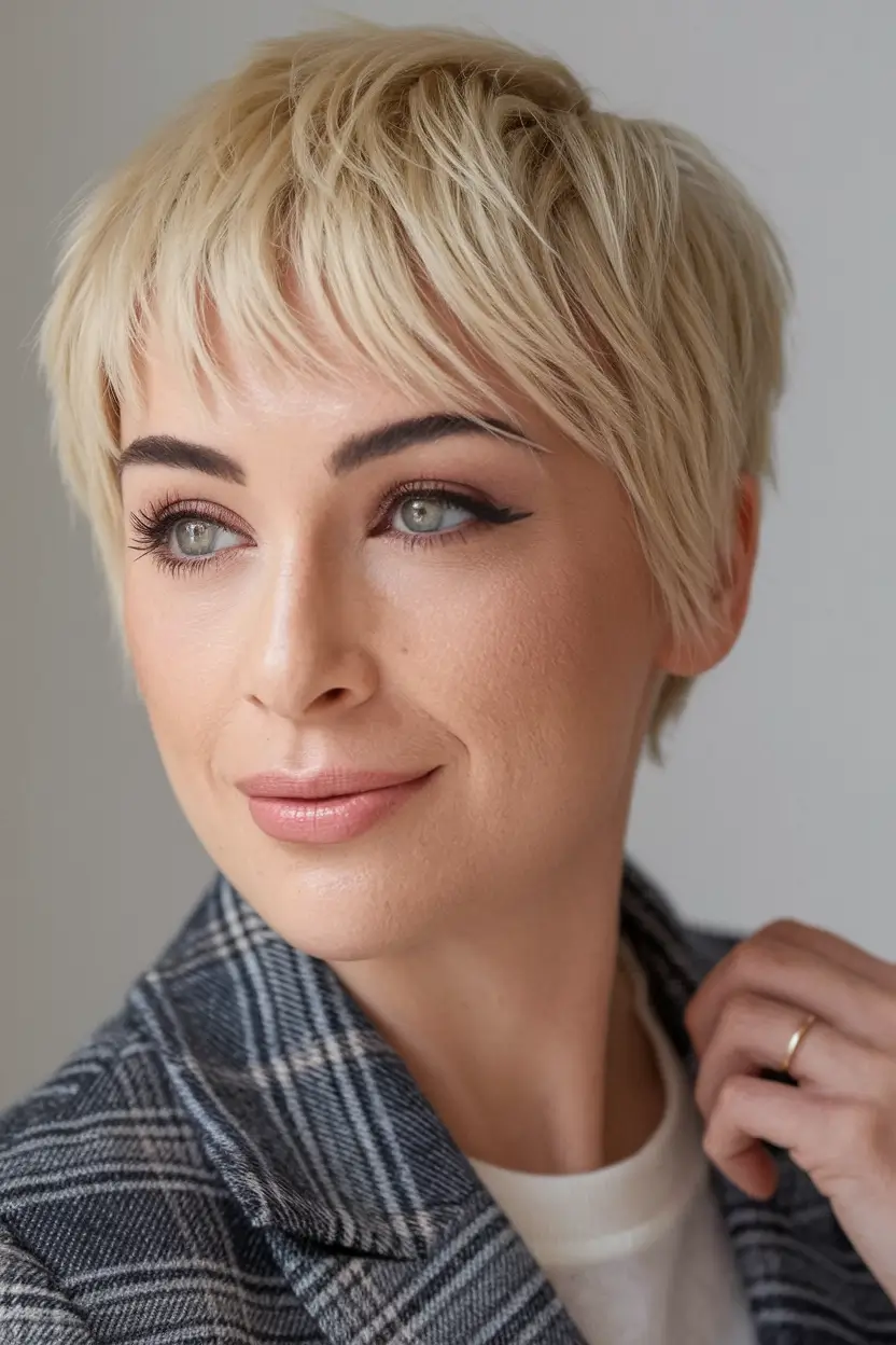 Soft Blonde Crop with Side Volume: Playful and Polished