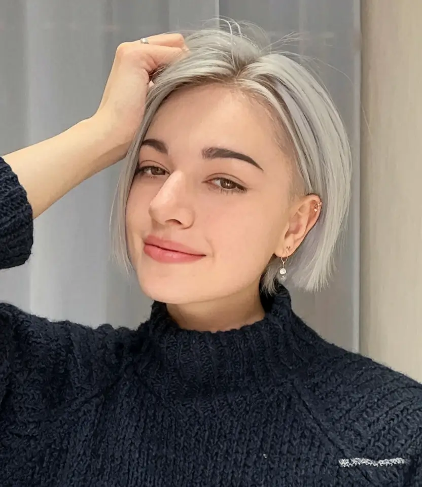 Orderly, classy, and even vintage-looking, this silvery bowl-shaped pixie is adding the accuracy. The feathered edges on the rounded top make the appearance soft, but does not compromise its shape. It is precisely this type of daring polish that the trends of short haircuts fall 2025 are pursuing.