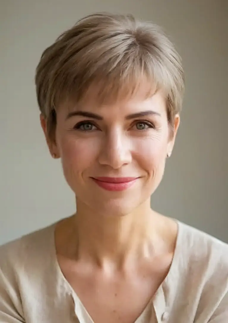 Frankly, it is this kind of style which makes you feel taller. There’s quiet confidence in a well-cut pixie. It is convenient, flattering, and yet so much feminine with soft makeup and little blush.
