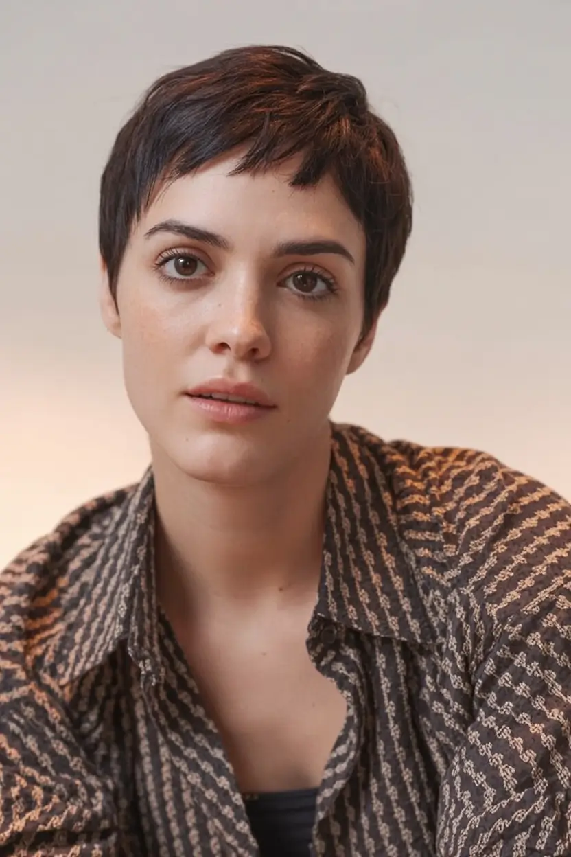 This cut makes lipstick seem obligatory somehow. The hair is the backdrop, bold pink, deep plum, anything that has presence.