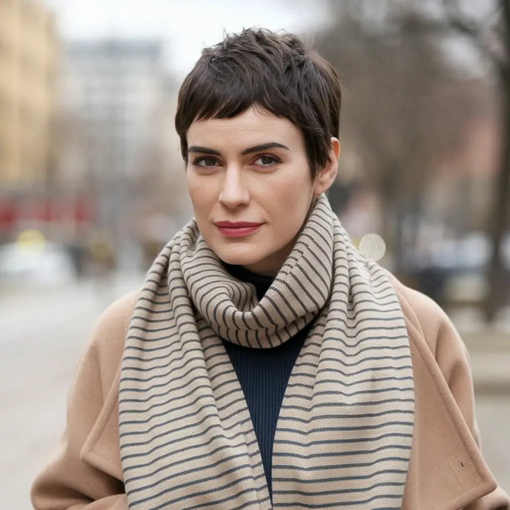 Sculpted Micro Bang Pixie: Snug for Scarf Season