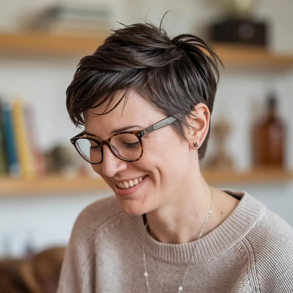This cut works especially well with glasses, which can be tricky with shorter styles. But this? It frames everything just right and gives you that “I just threw this on” vibe — even when you didn’t.