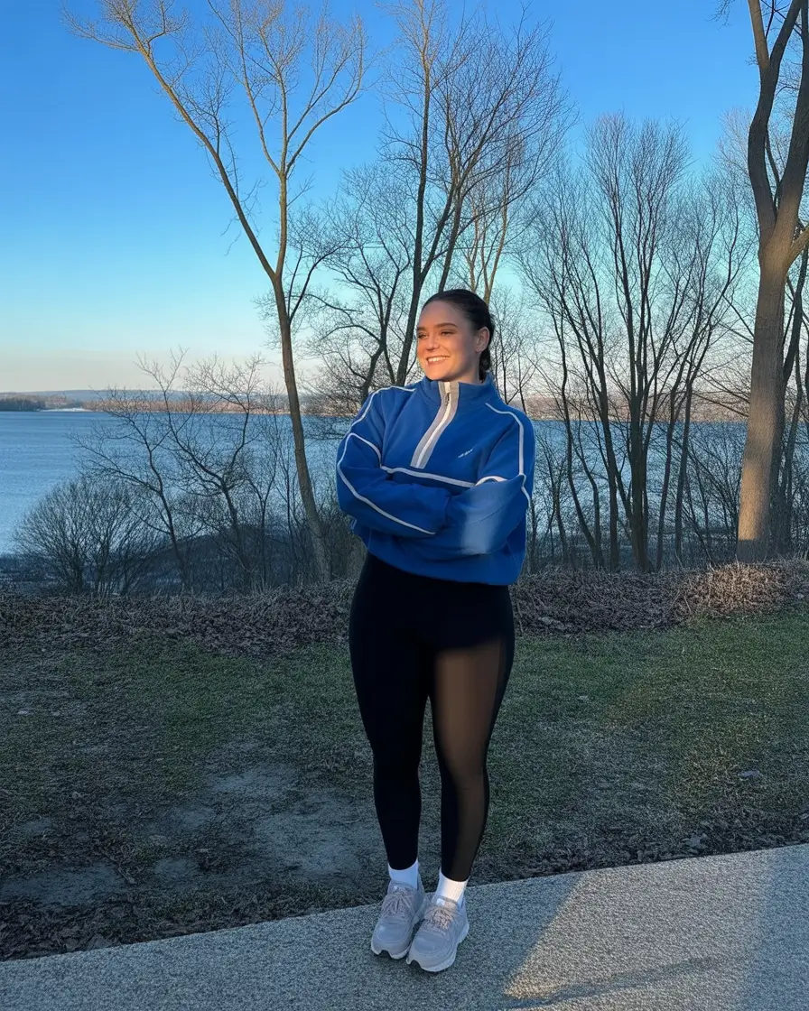 I like the fact that it is so balanced. The puffed vest is constructed to be structural and warm, and the joggers make it easy and lightweight. It is workable in cold weather and yet seems to be held together. I have watched this formula all around New York this year womens blending activewear with city style creating a look that feels contemporary and undefeatable.