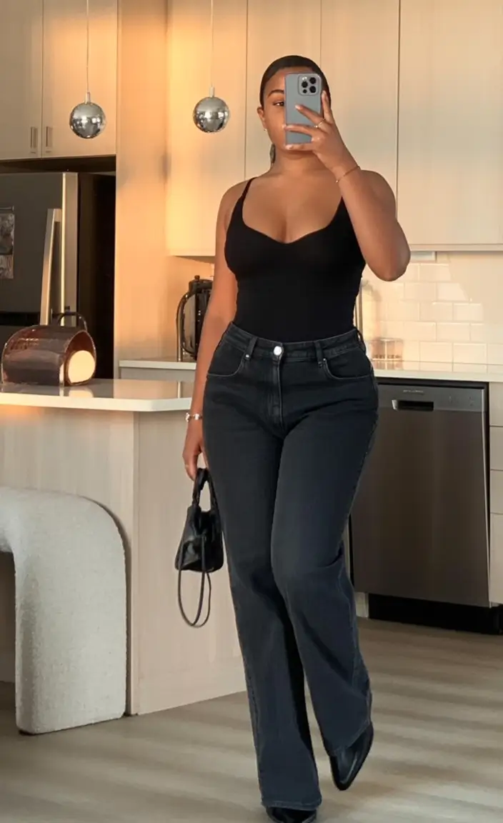 Dark denim has a certain power in it. It makes the look sharp, adds sophistication and immediately elevates even the most casual ones. This outfit black jeans and a smooth, fitted top is shooting out quiet confidence. It is making curvy clothes elegant, yet with a nonchalant downtown vibe that will be appropriate in 2026.