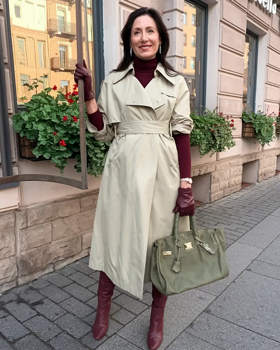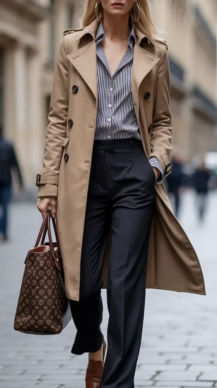 The best thing about this is its confidence. It says: “I know my taste, and I don’t need trends to define me.” Still, the trench is having a serious moment this fall (again), and a classic striped shirt is back on everyone’s radar — from the streets of Copenhagen to the latest Net-a-Porter edit. It is one of those fall outfits over 40 2025 that spans decades without a hitch.