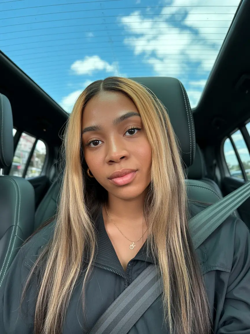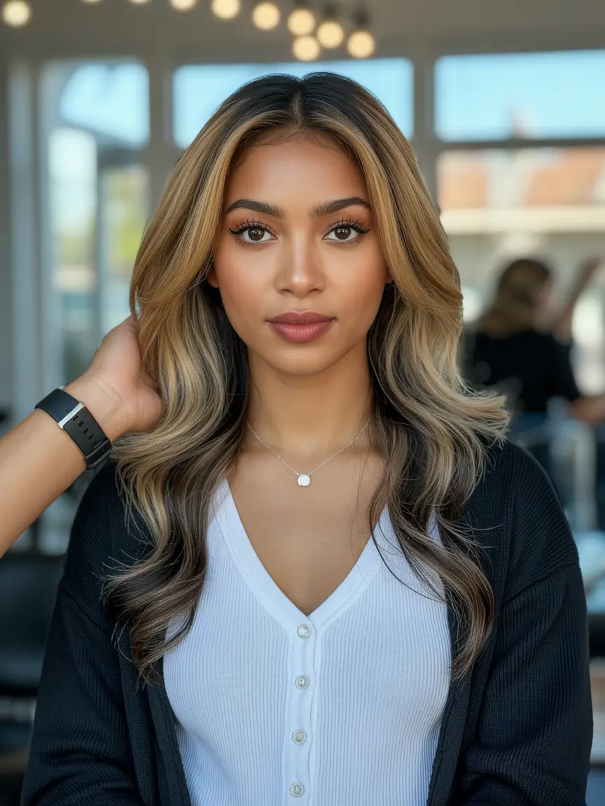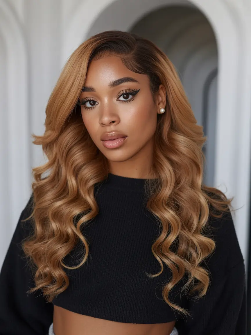 This one? Pure sunshine in a bottle. Golden butter blonde is to the woman who cannot allow winter to dim her down. It is a testable hair color that the black women would experiment with in 2025-2026 with the help of the soft golden streaks that will be applied on the neutral base.