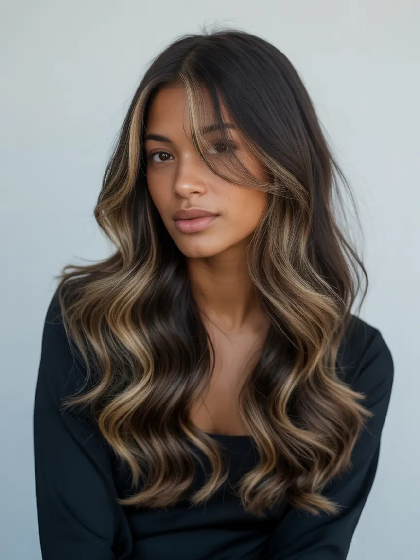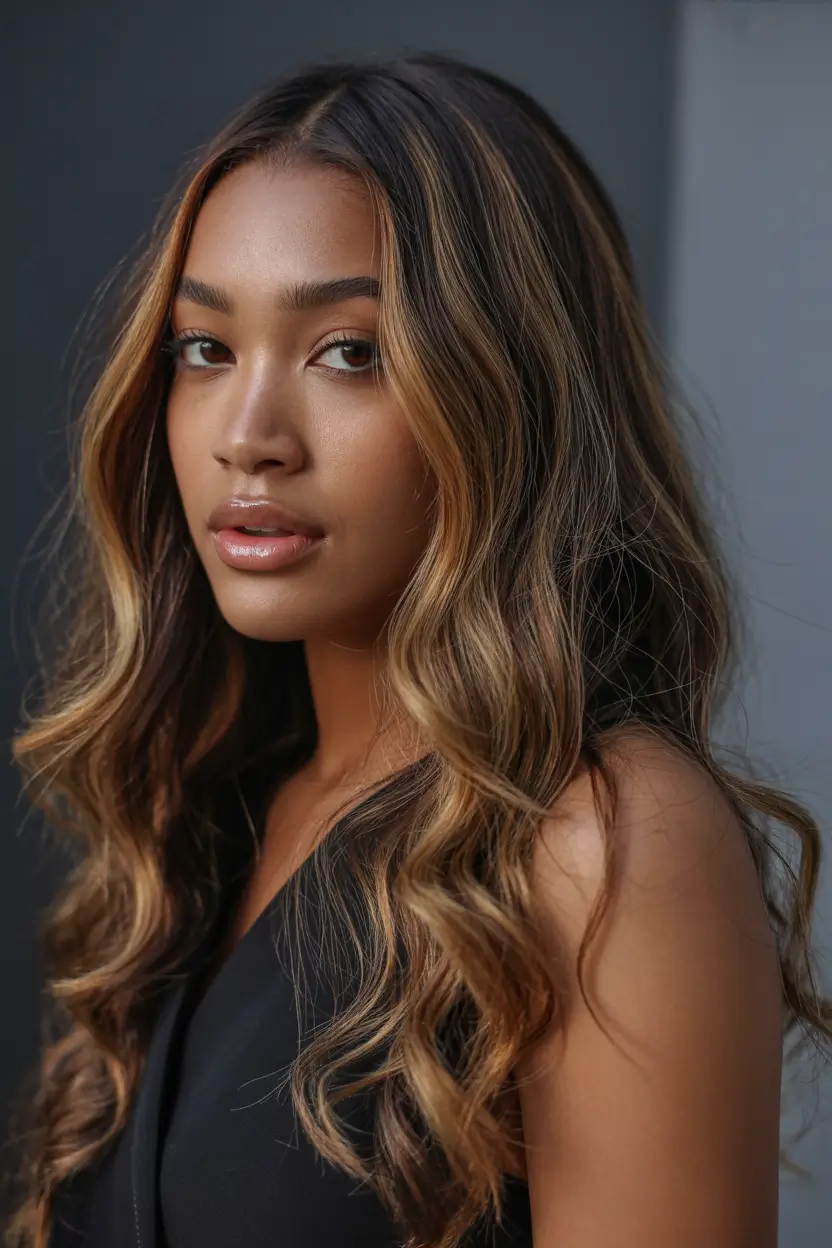 Soft stripes of toffee along more darker roots – the luxurious, dimensional, and cozy. It is the type of coloring that makes your hair look flattered by the studio lighting even on bad weather. I refer to it as my natural luxury shade as it compliments both the curls and the waves, particularly in winter hair colors on black women with dark skin that desires the sunkiss effect during the cold weather.