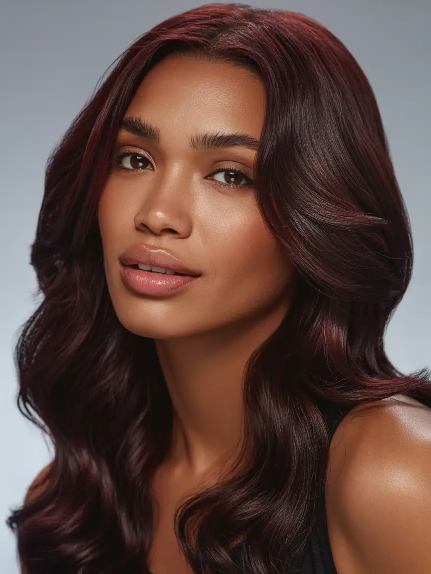 Going to feel too safe in classic brunette, too bold in red, and then go with berry, a blend of the two. It is the best short or long black woman hair colors in winter, as it appears dimensional on all the cuts. The shade is warm and soft but contains some sort of spark that lights it up.