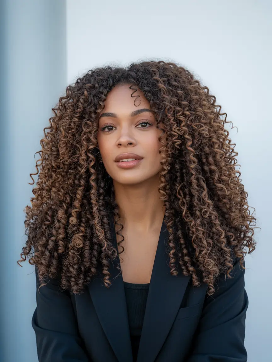 Something hypnotic with the deep curls in honey shades. It is that delicate play of light and shadow, where dark brown roots are flowing into caramel spirals of gold. This color is reminiscent of winter sunlight, when it is shining through the clouds, sunny and down-to-earth. It has always occurred to me that there is more than a color in warm dimension; it is a feeling. It makes your curls have some character without making a noise. Certainly among the adorable winter hair color black women may confidently use this season.