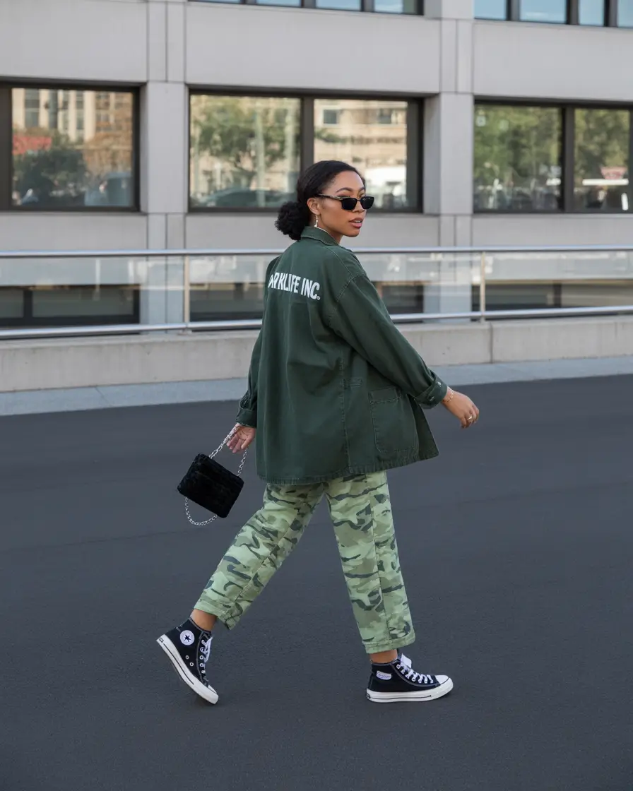 Camo is timeless when it is dressed in a graceful way. This outfit borrows the traditional military design and provides it the city-girl style. The bulky khaki jacket that is worn over camo pants gives the appearance of formality in casualness – a casual outfit that is casual uniform of the carefree minimalist. It forms a part of the clothes that Black women will wear casually in 2026.