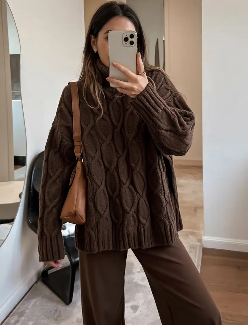 Chocolate Cable-Knit Chic