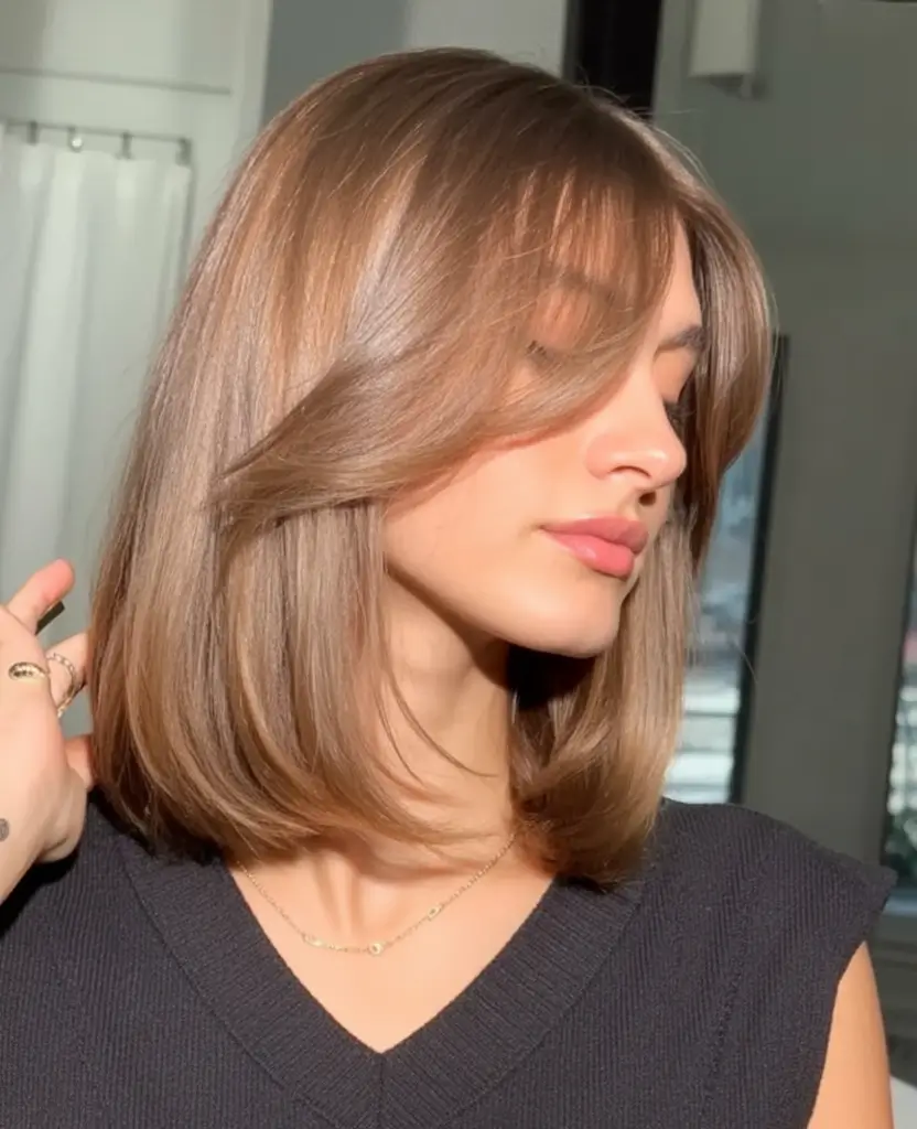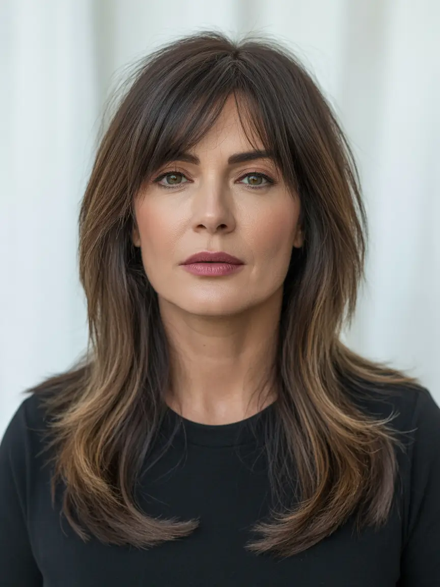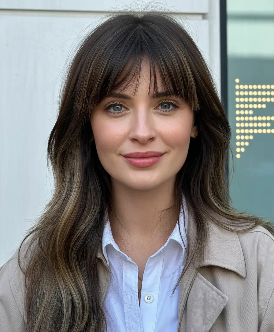 A modern fringe in long hair is powerful and yet romantic. The bangs attract the attention to the eyes, whereas the layered lengths create the dimension and the softness. It is the type of fashion that adds a kind of drama which is just ideal during the winter months when we tend to lean towards deeper shades and denser fabrics in our fashion choices.