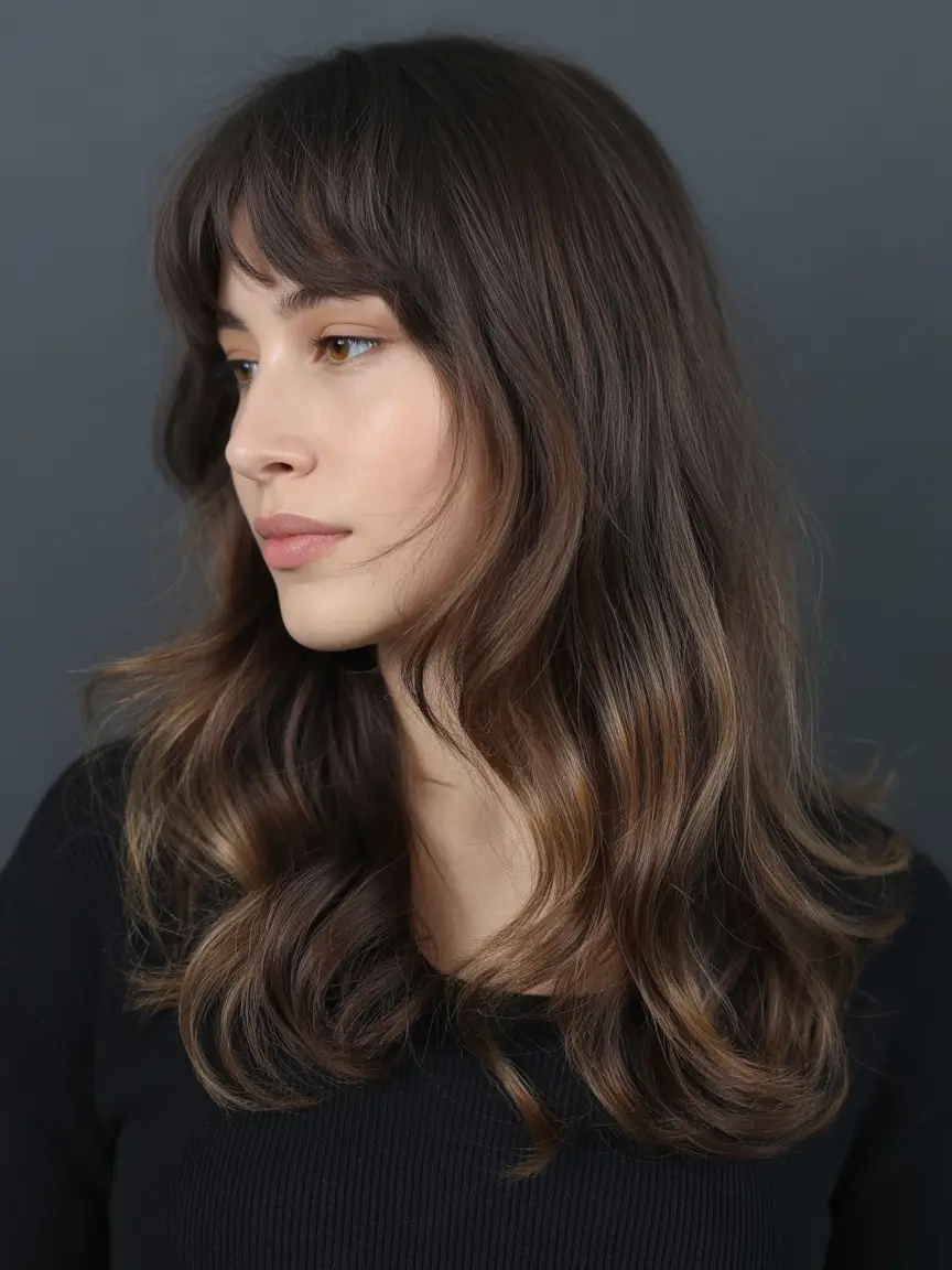 Velvet Mocha with Curtain Bangs