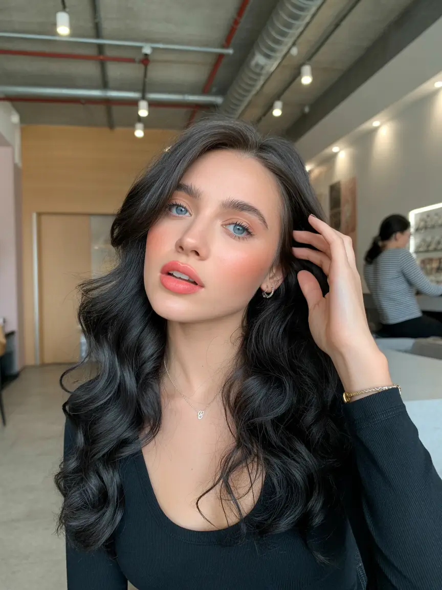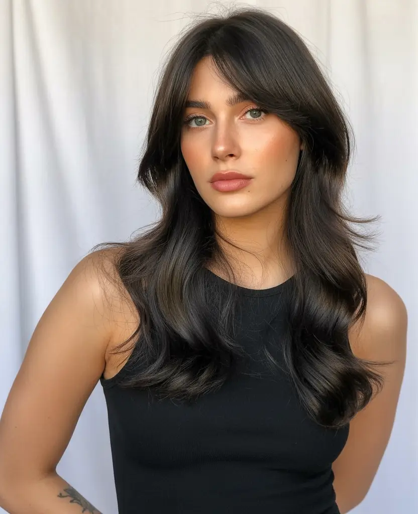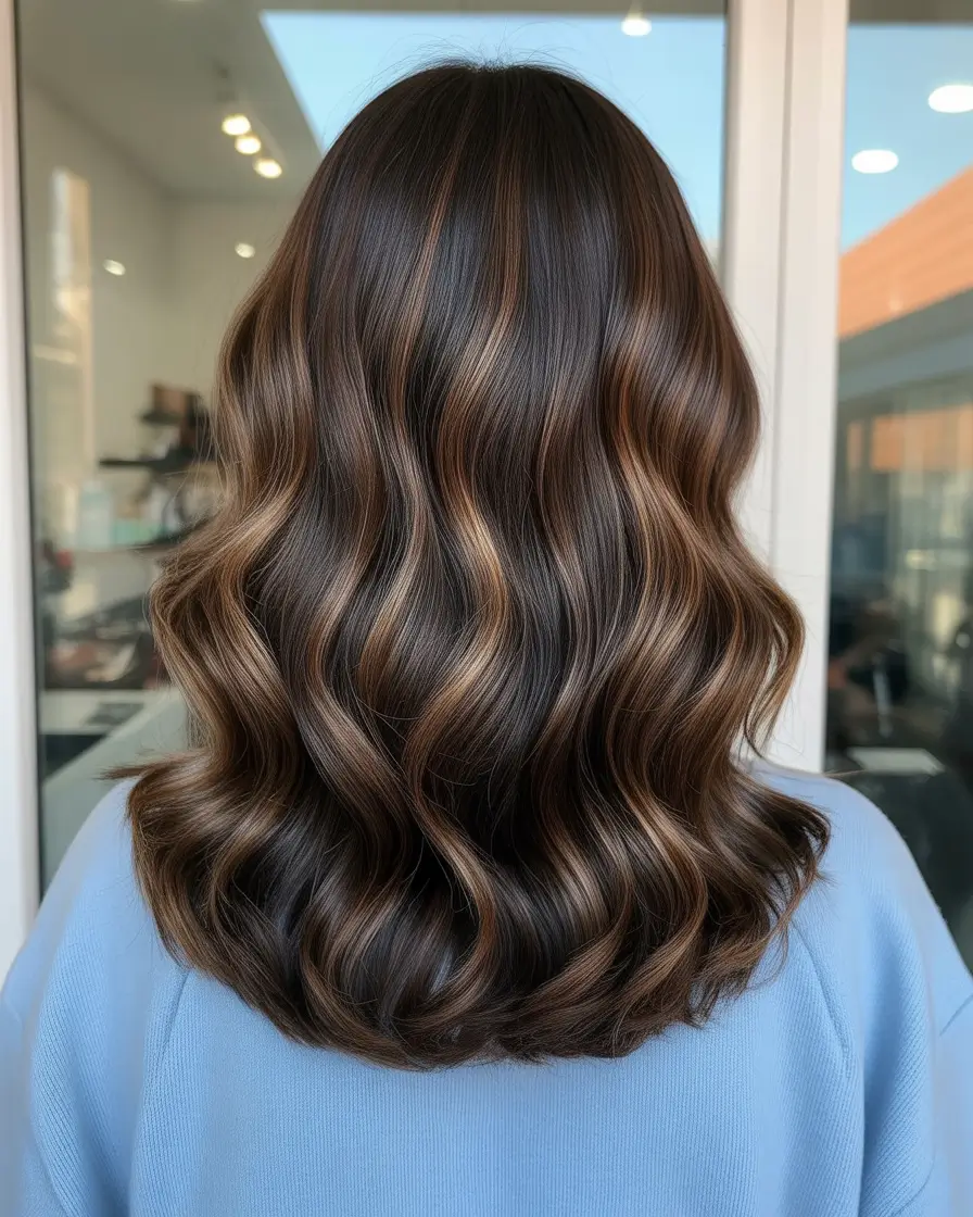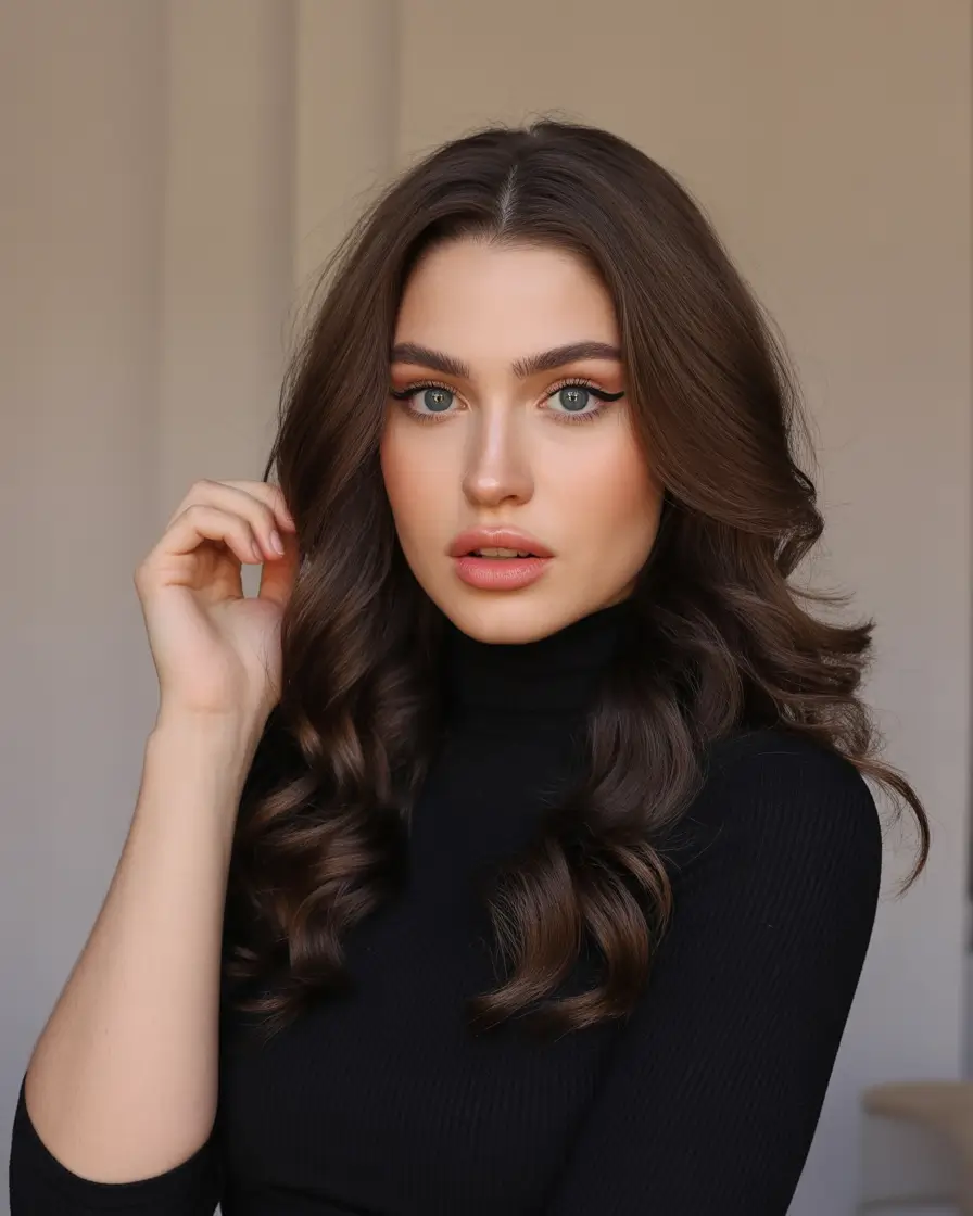 It is not merely a color, but an aura, that is being a quiet confident lady in a black turtleneck, with latte in her hands, strolling over a frosty city morning. It was one of the most traditional and modern winter hair colorings in one of the darkest shades of brunettes.
