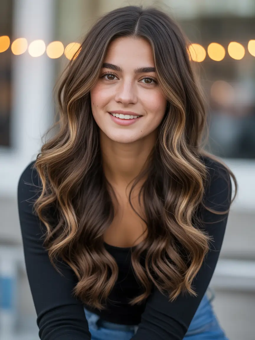There is a charm in motion – and this hazelnut balayage is testimony to it. It is a soft golden-brown that does permeate through a dark mocha and gives that smooth touch of dimension and natural appeal. It is the type of color which appears glowing indoors and radiant when the sun is shining in winter.