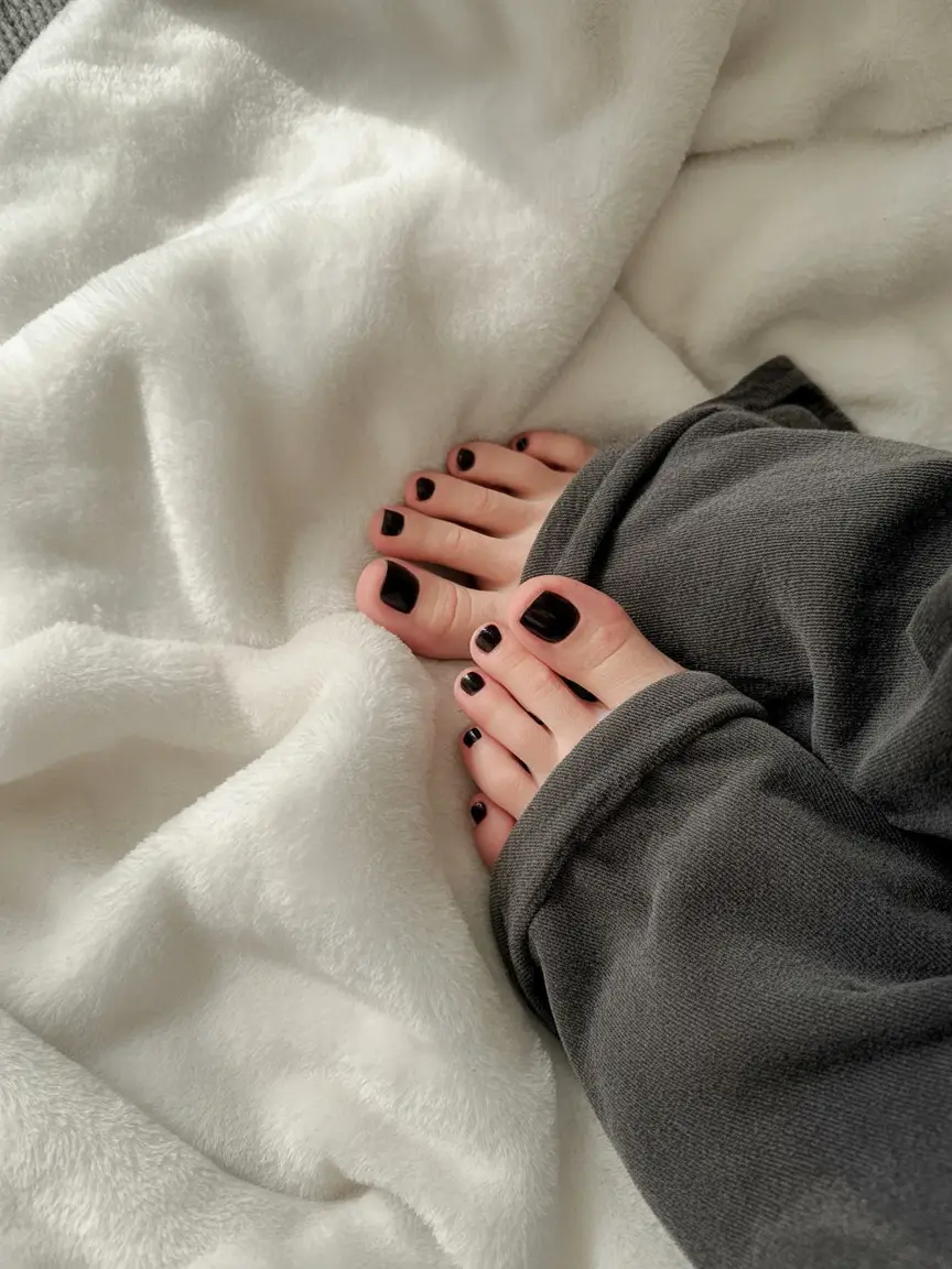 Black polish on toes with soft clothes and low-key lighting is somehow magnetic, it is both tender and strong at the same time. There is a certain tranquility, a certain coolness to this shade, but it is all in line with the more leisurely pace of winter. It is one of those classic options that do not require it to be explained due to its popularity among winter nails toes. It is impertinent, but not arrogant, a hint of confidence, floating softly in the room.
