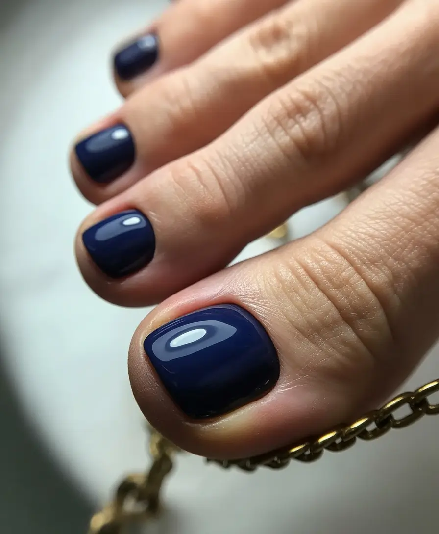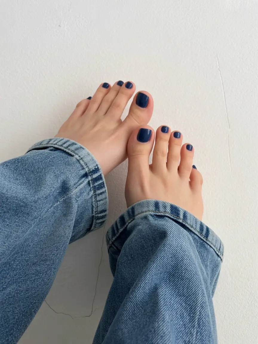 Midnight blue has returned silently — and on toenails in winter, it is the surprising luxurious tone that is so modern and magnetic. Something about this color is very stylish: it is not as conspicuous as black, not as sweet as berry but still it gets attention. Just imagine it was velvet on your nails– full and deep and a little mysterious.